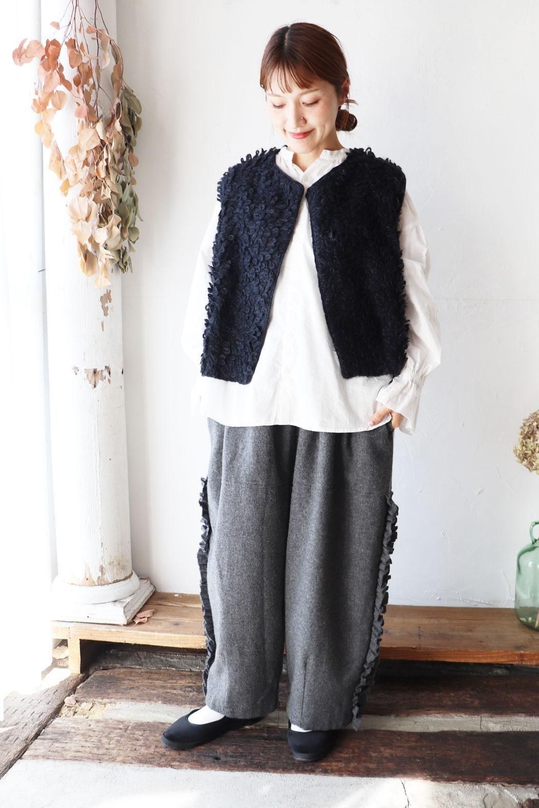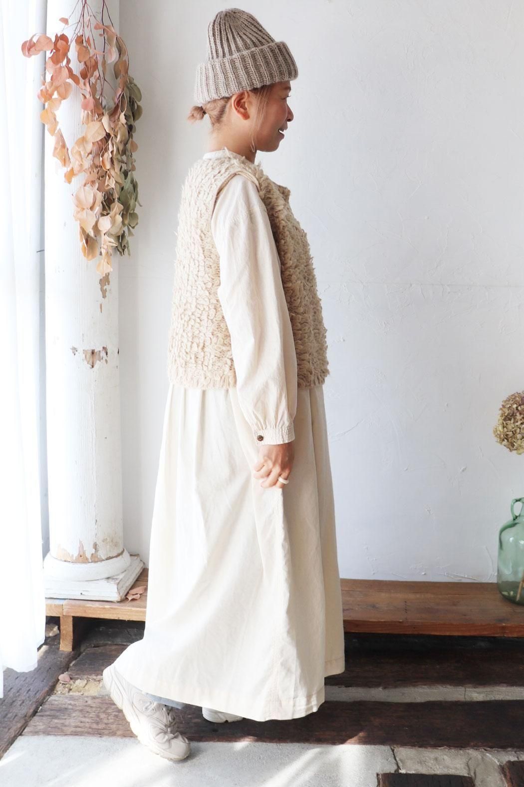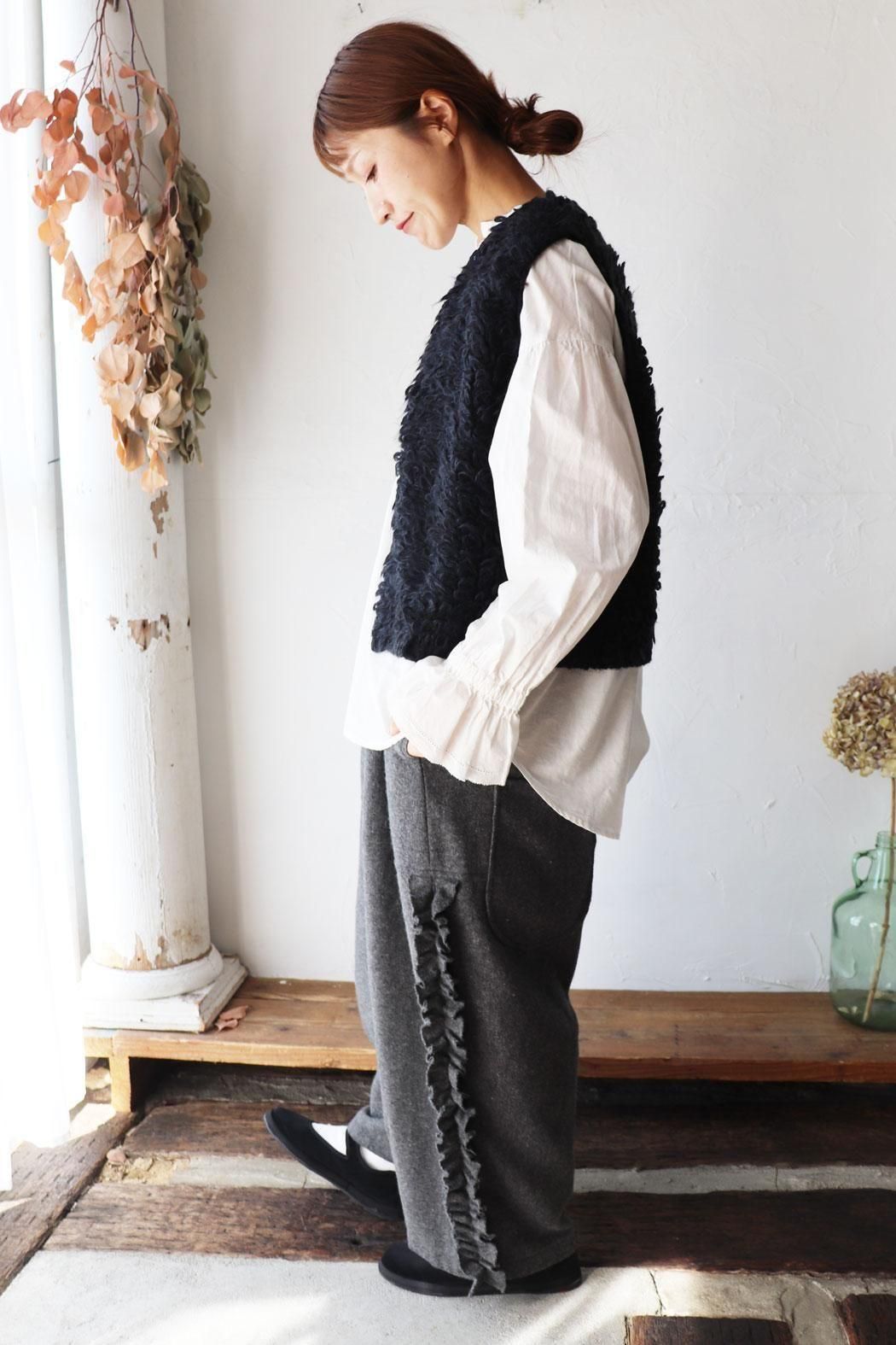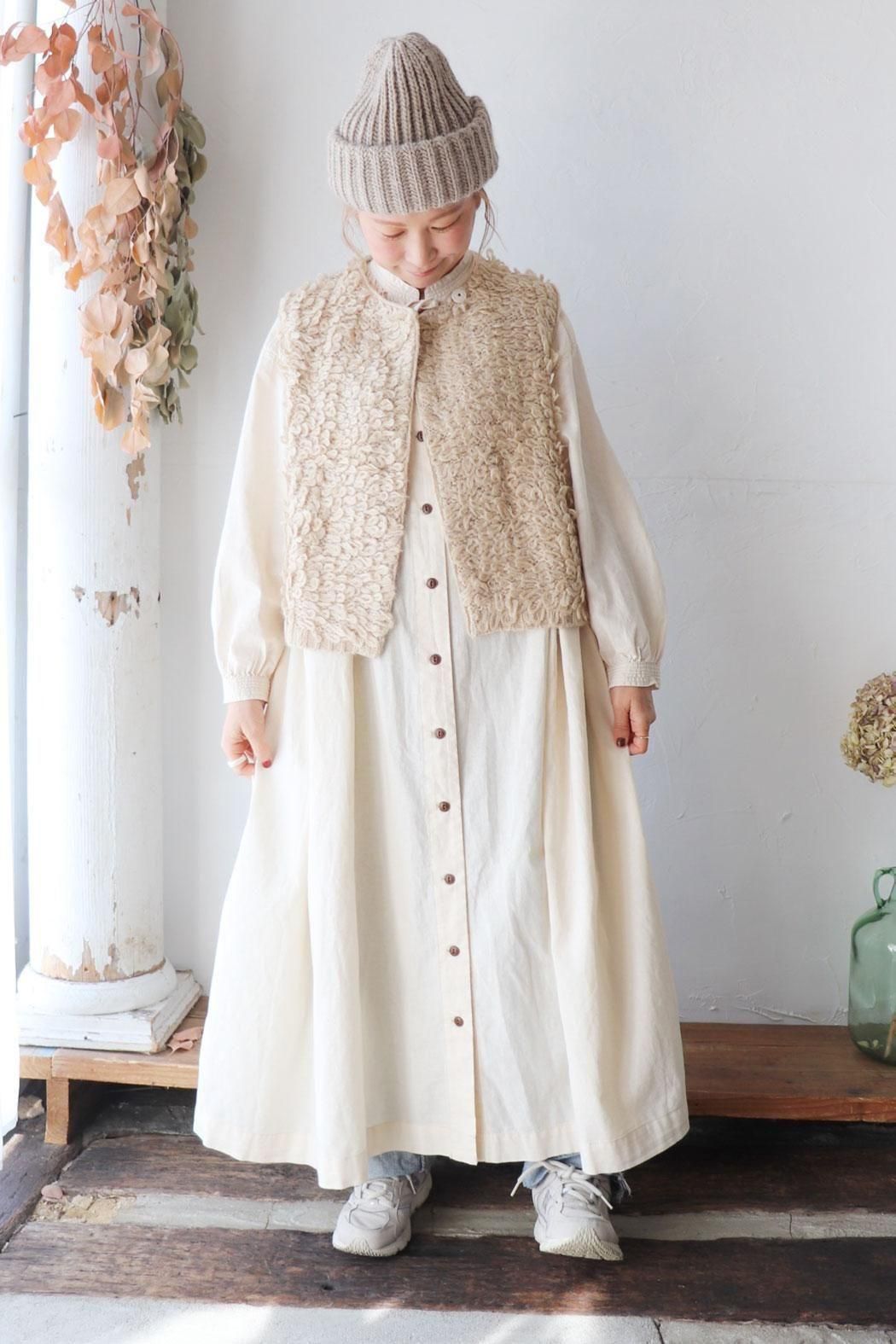 モヘアブレンドの毛足の長いふわふわとした糸をループ編みにしたベスト。