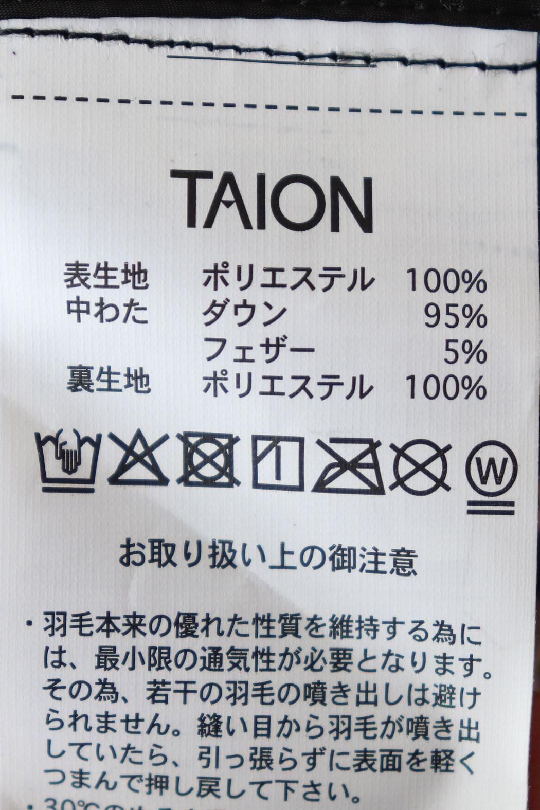 TAION は上質なダウンを使用し、寒い季節でもしっかり温かく*