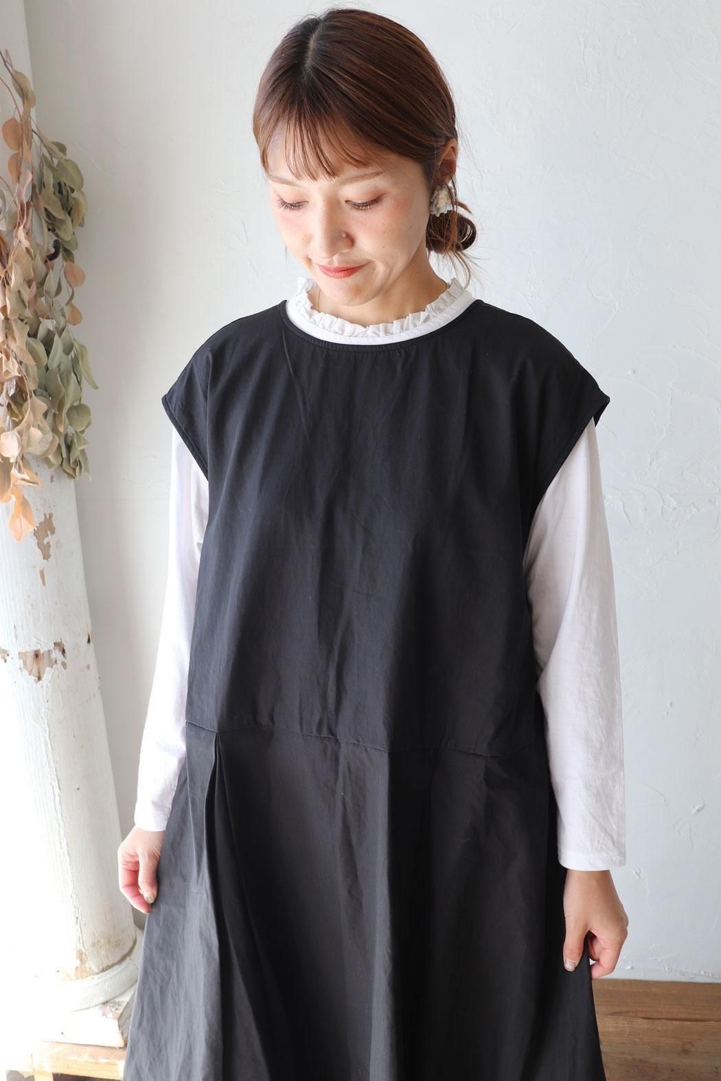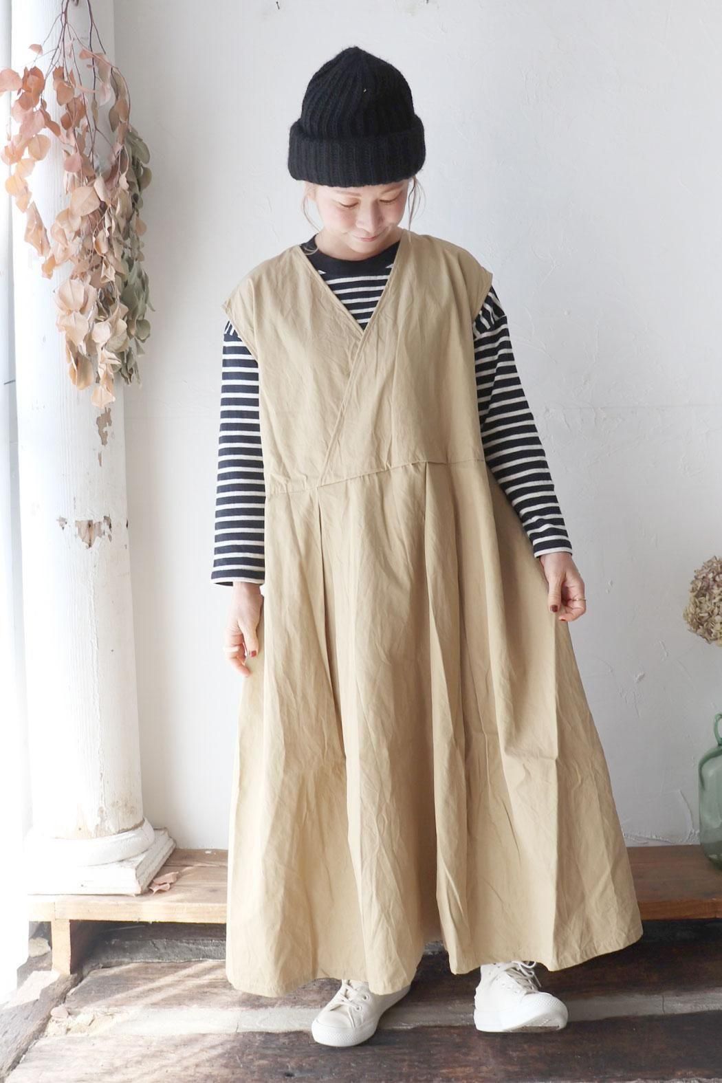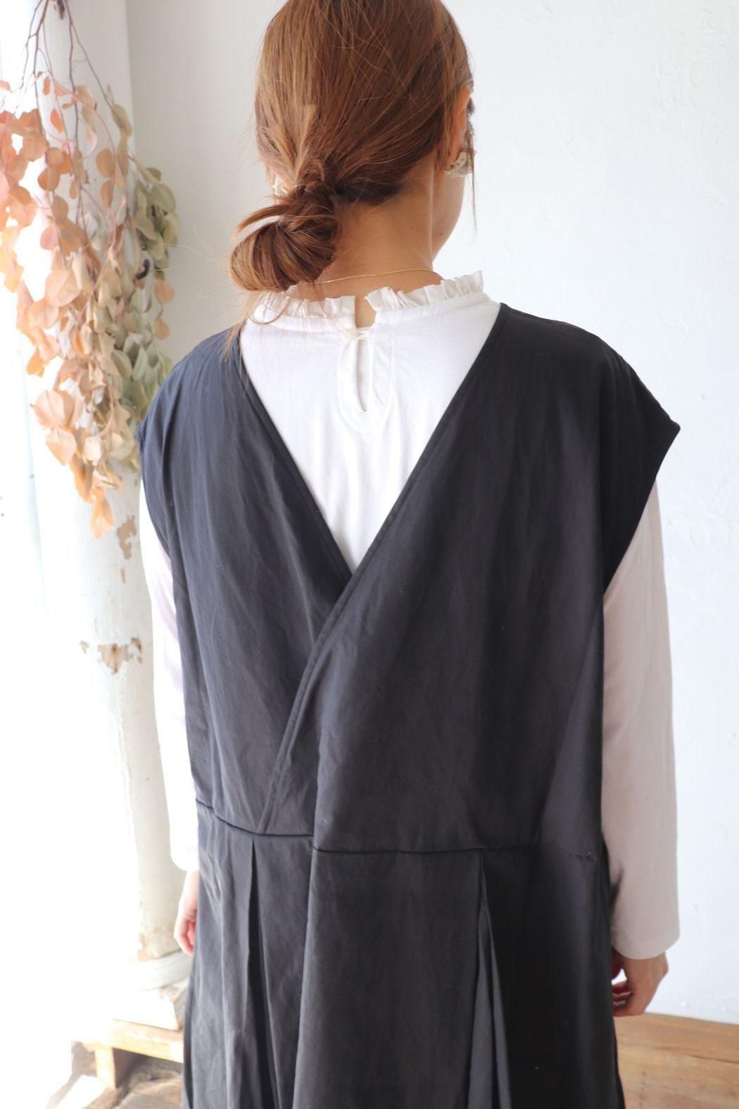 前後着用可能な2way仕様なので、1枚で違った雰囲気を楽しめます。