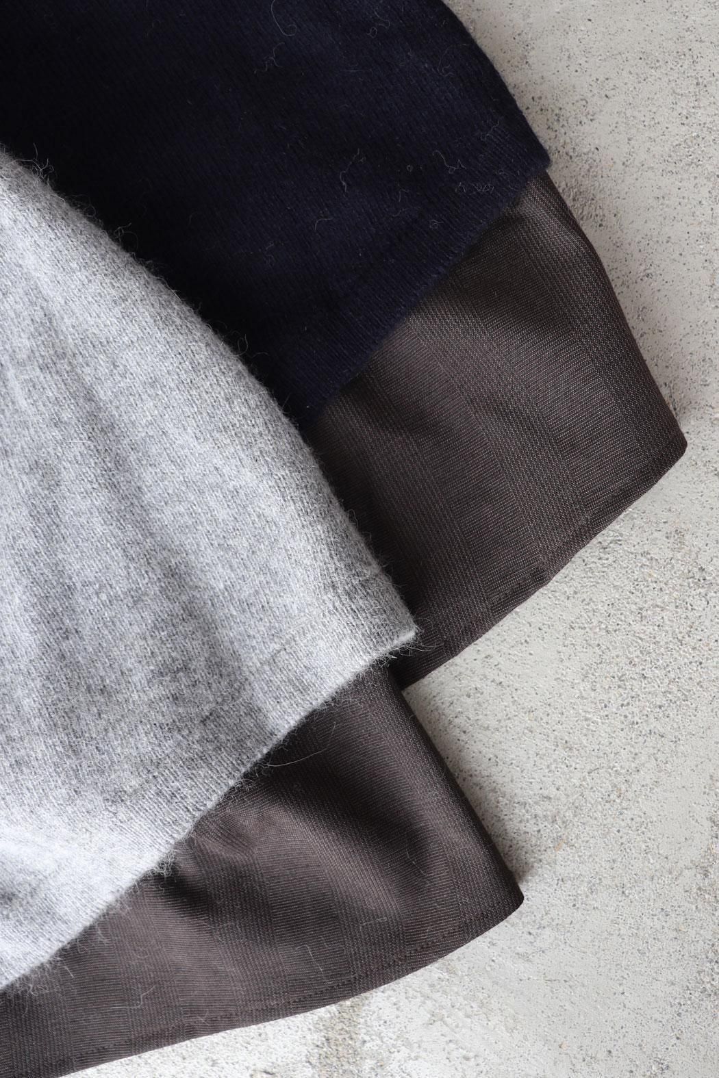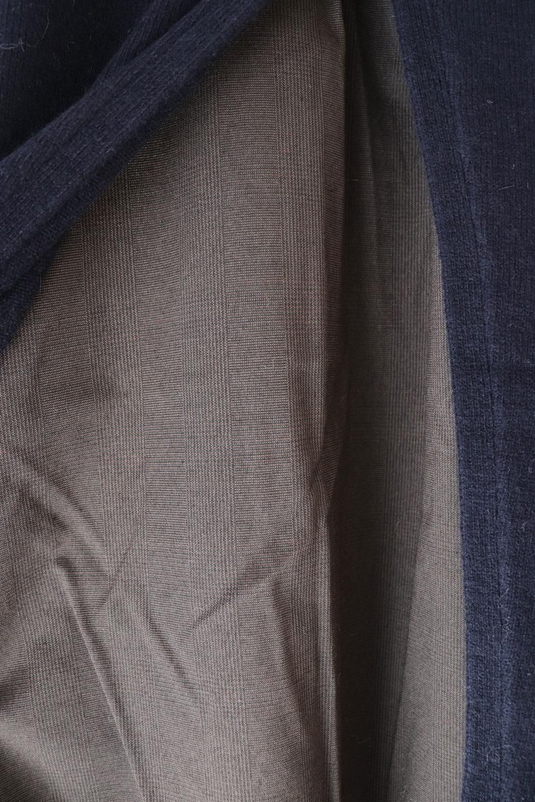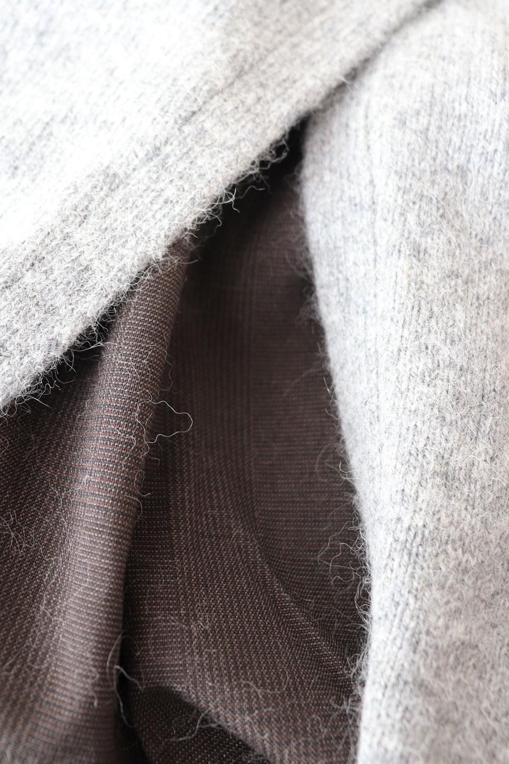 細く柔らかなアンゴラ生地とグレンチェック柄の布帛生地をドッキングしました。