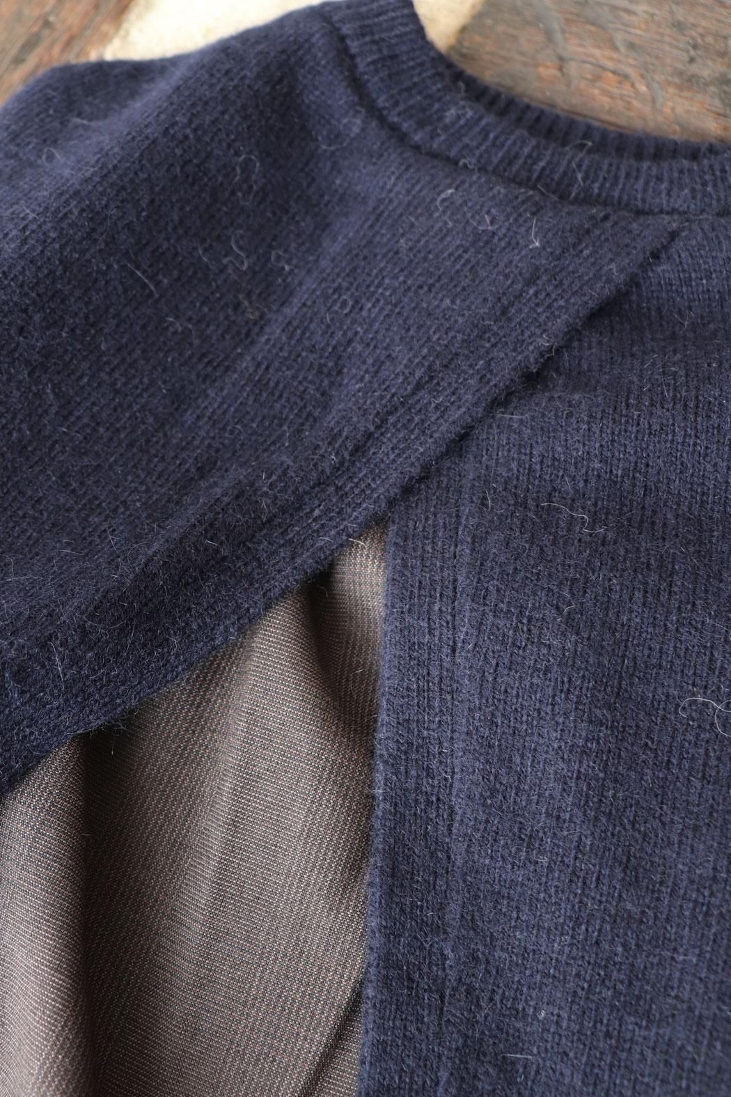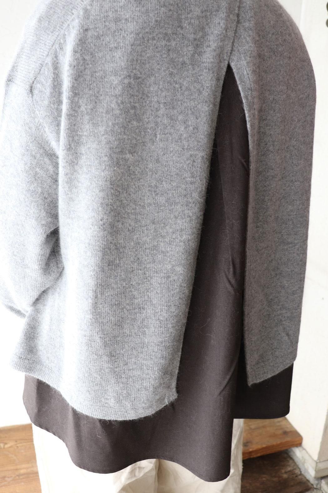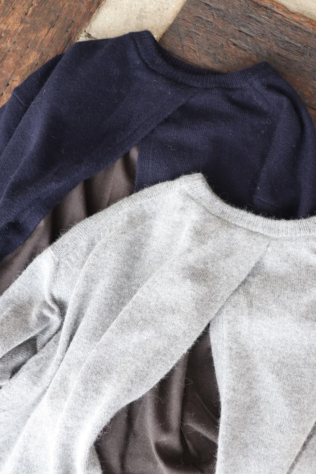 細く柔らかなアンゴラ生地とグレンチェック柄の布帛生地をドッキングしました。