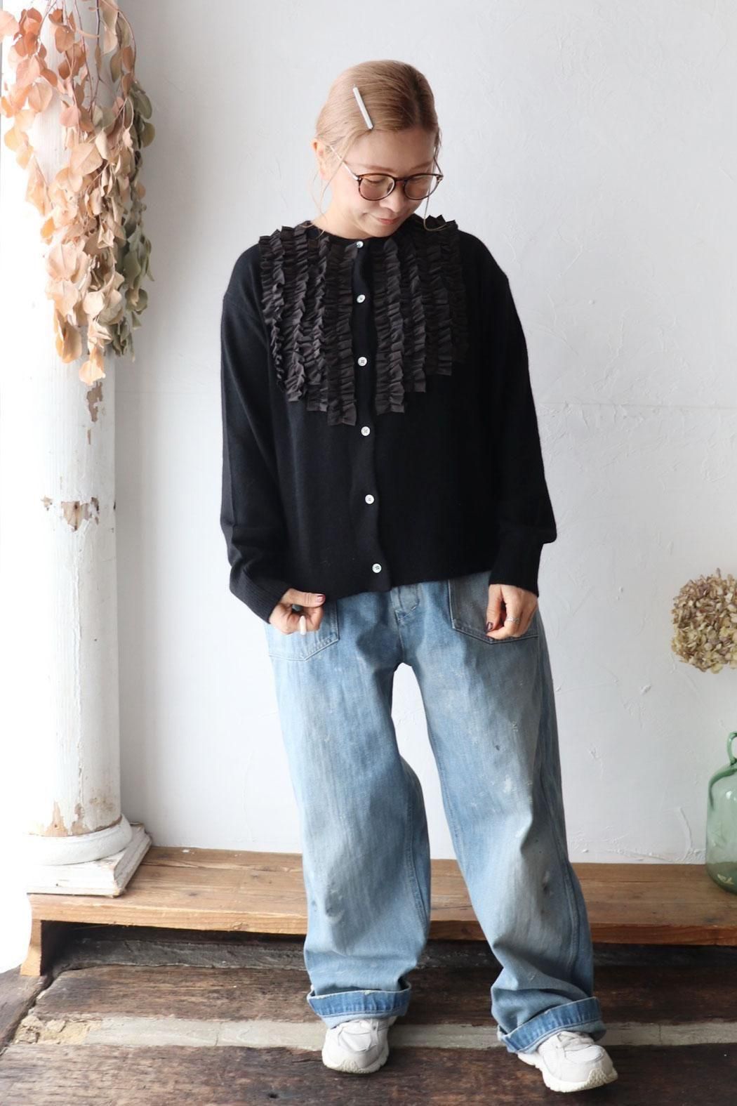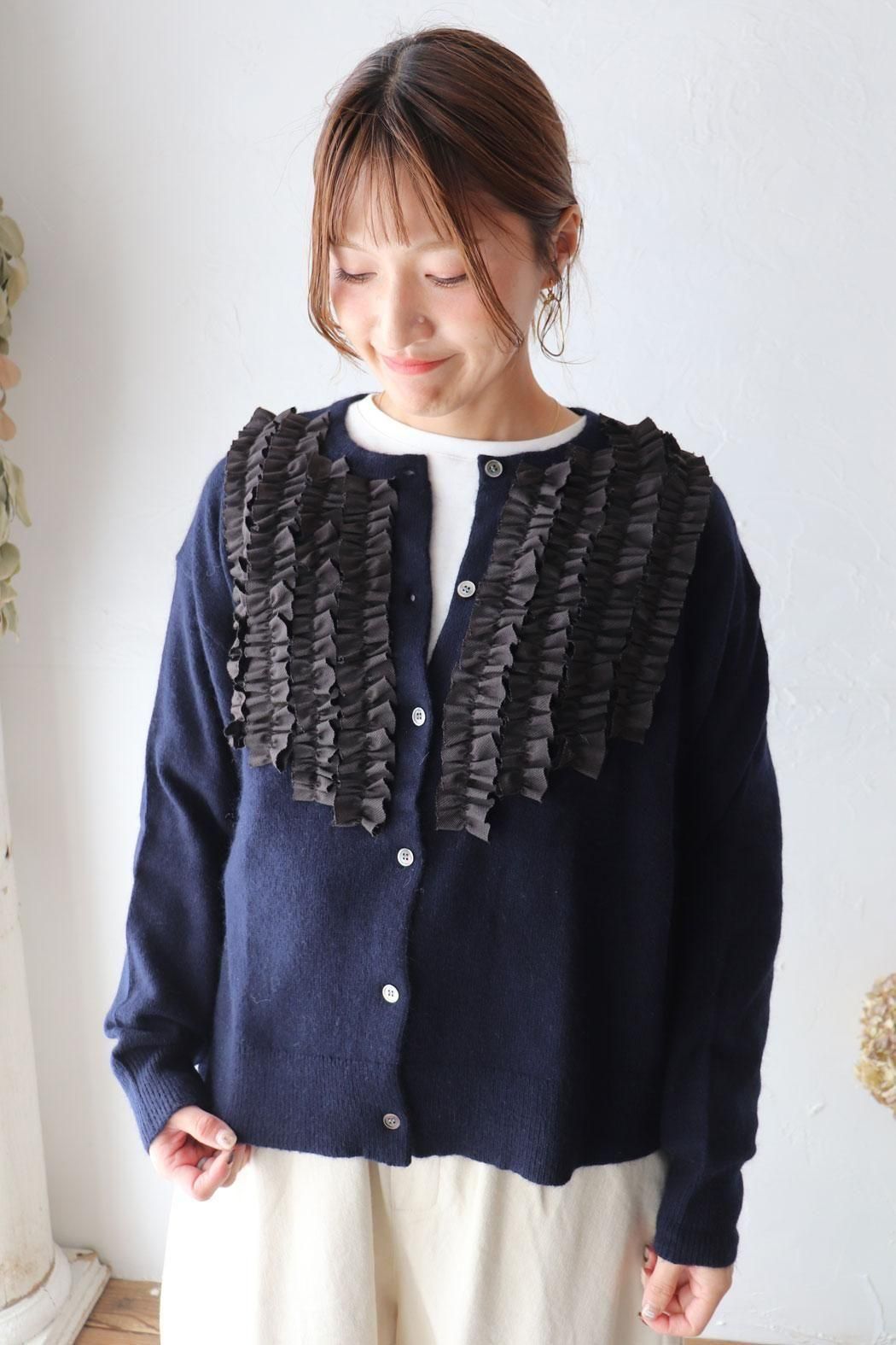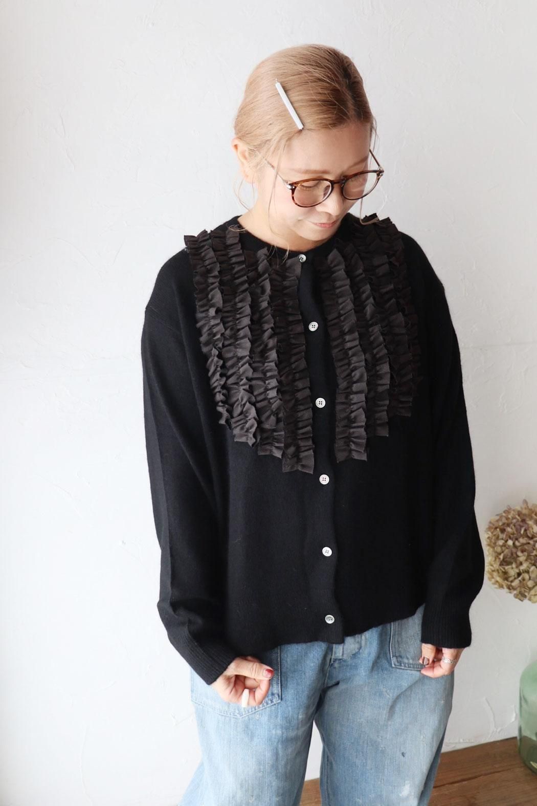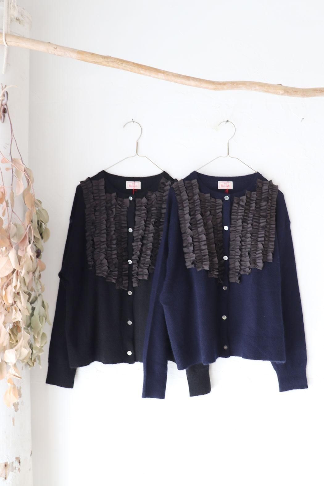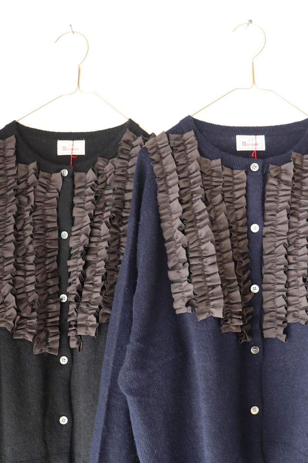mao made(マオメイド) アンゴラ×グレンチェック フリルカーディガン