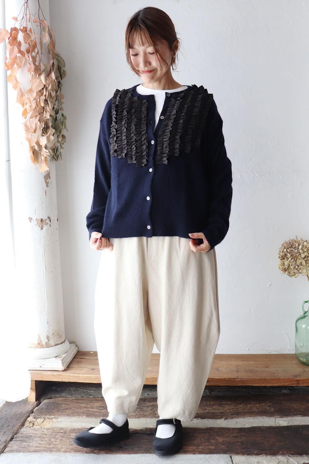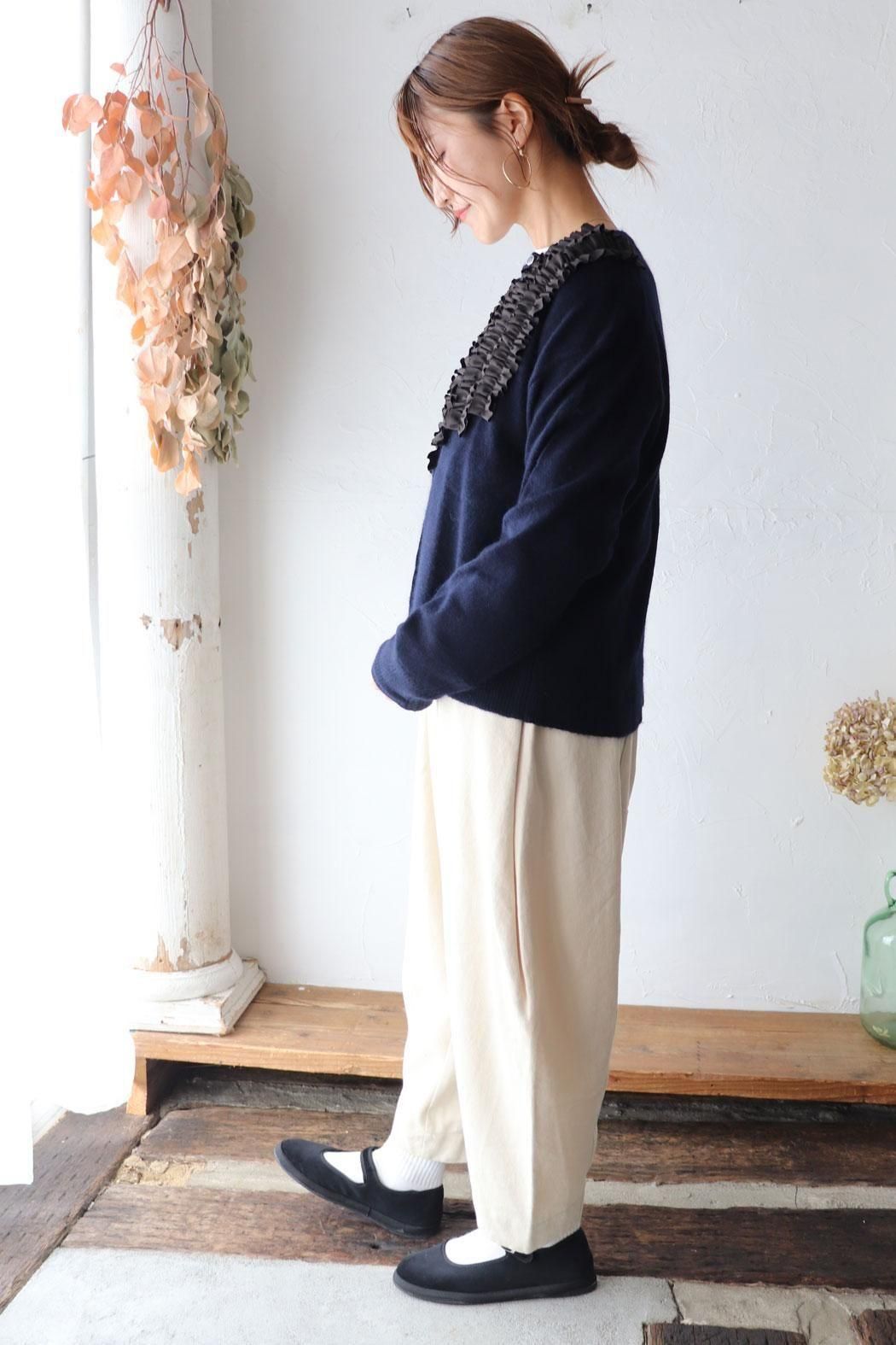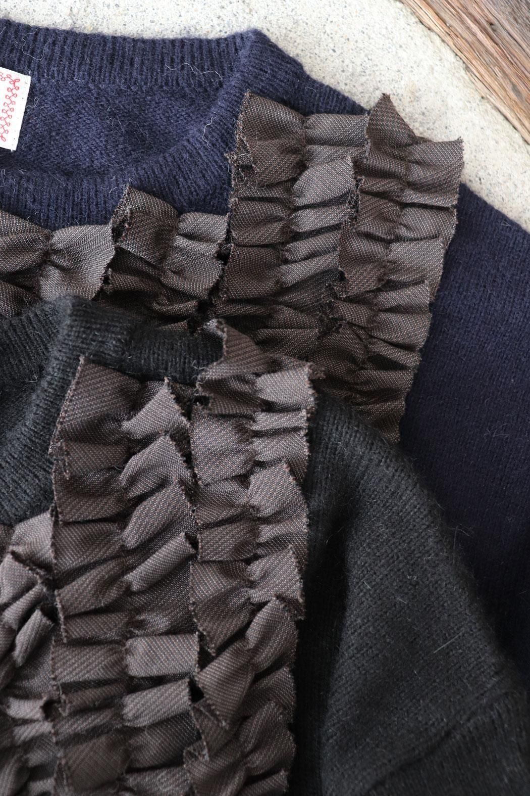細く柔らかなアンゴラ生地とグレンチェック柄の布帛フリルをドッキングしました。