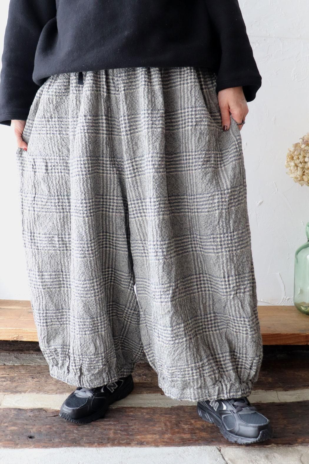 tumugu:(ツムグ) コットンウールグレンチェック バルーンパンツ