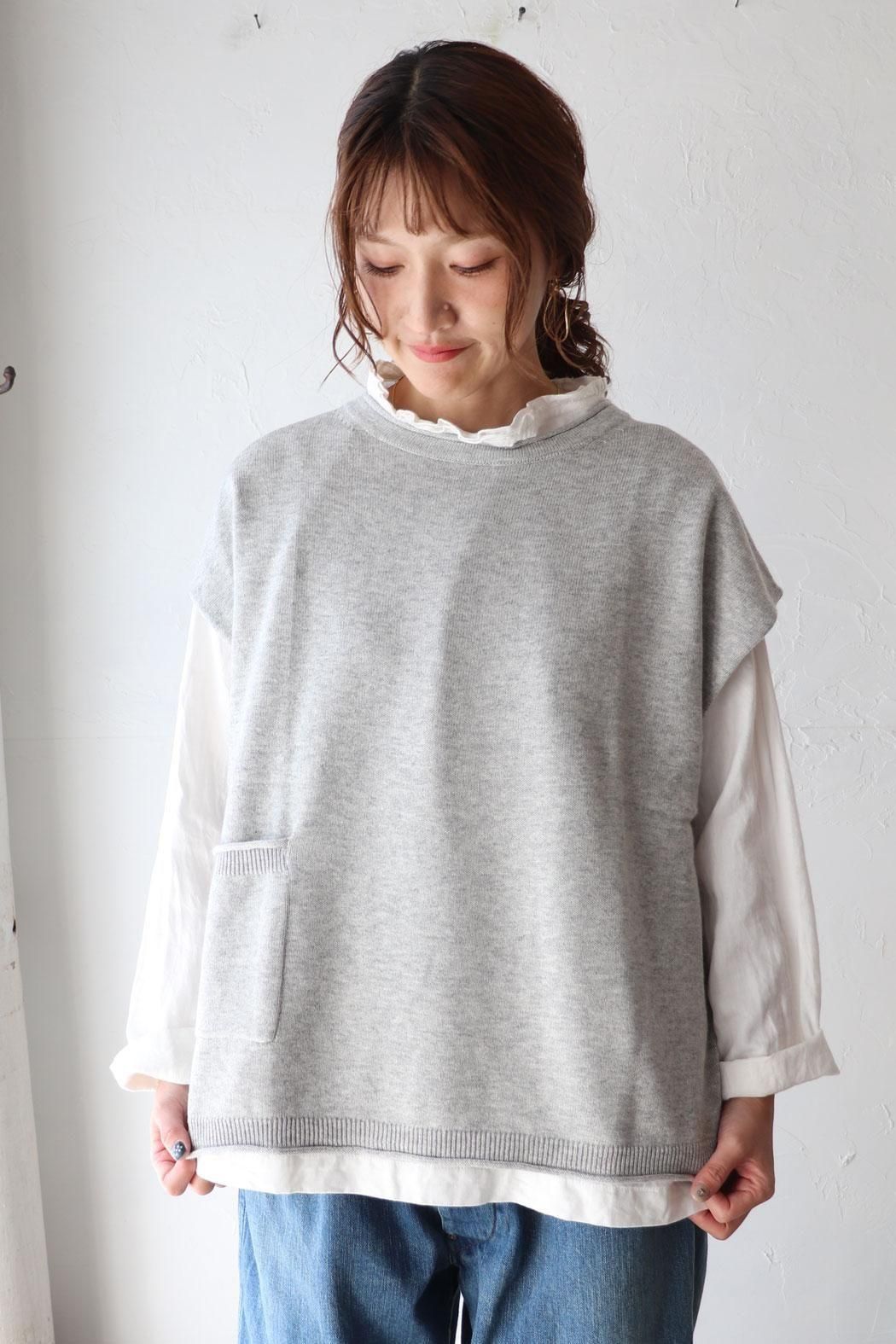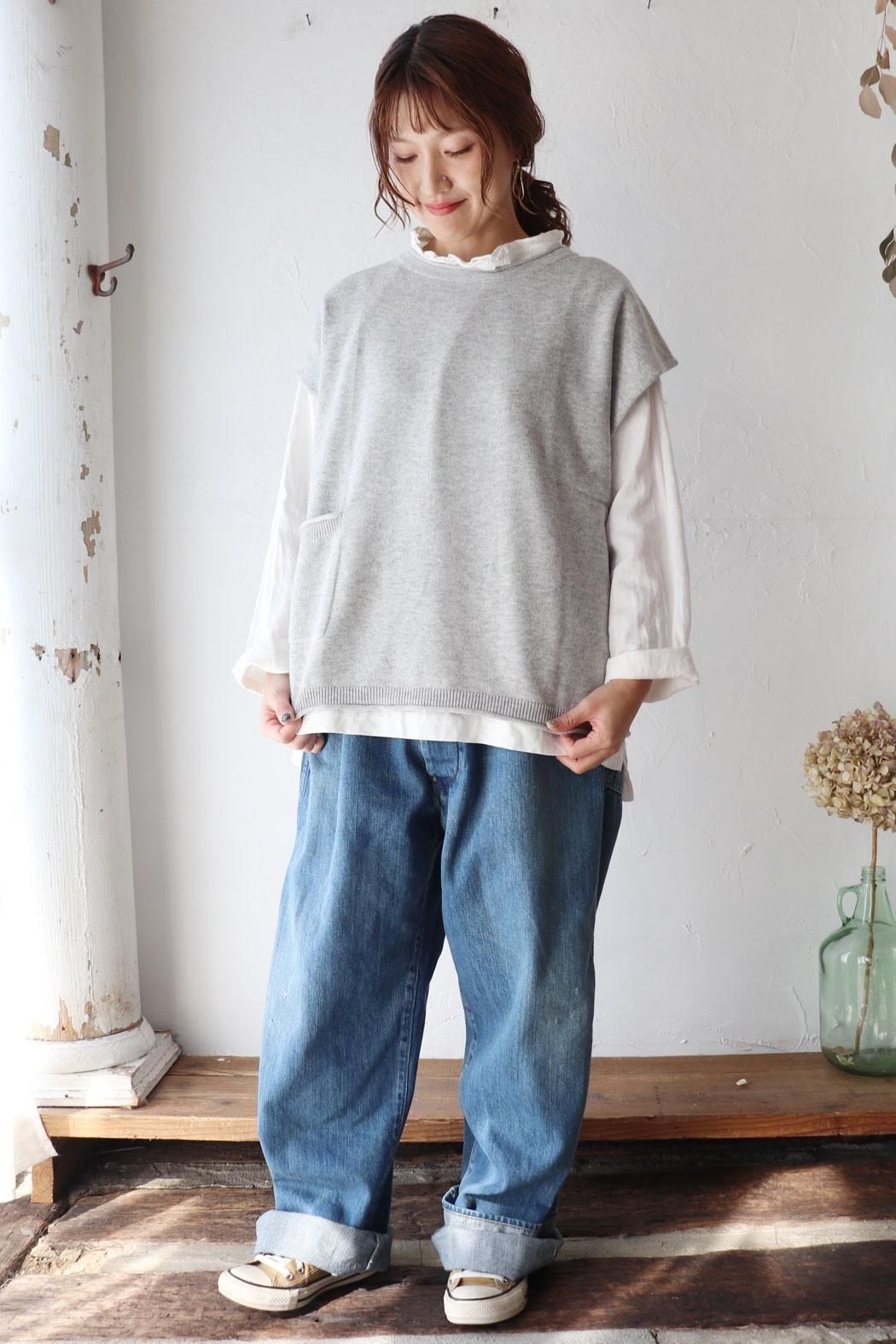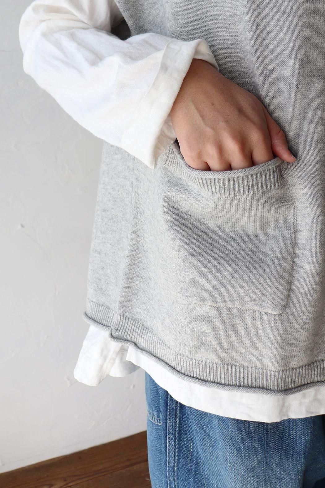 着心地の良いコットン素材に温かみのあるウールを配合したニットベスト。