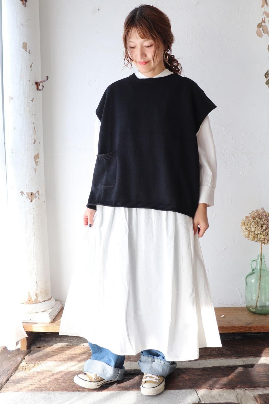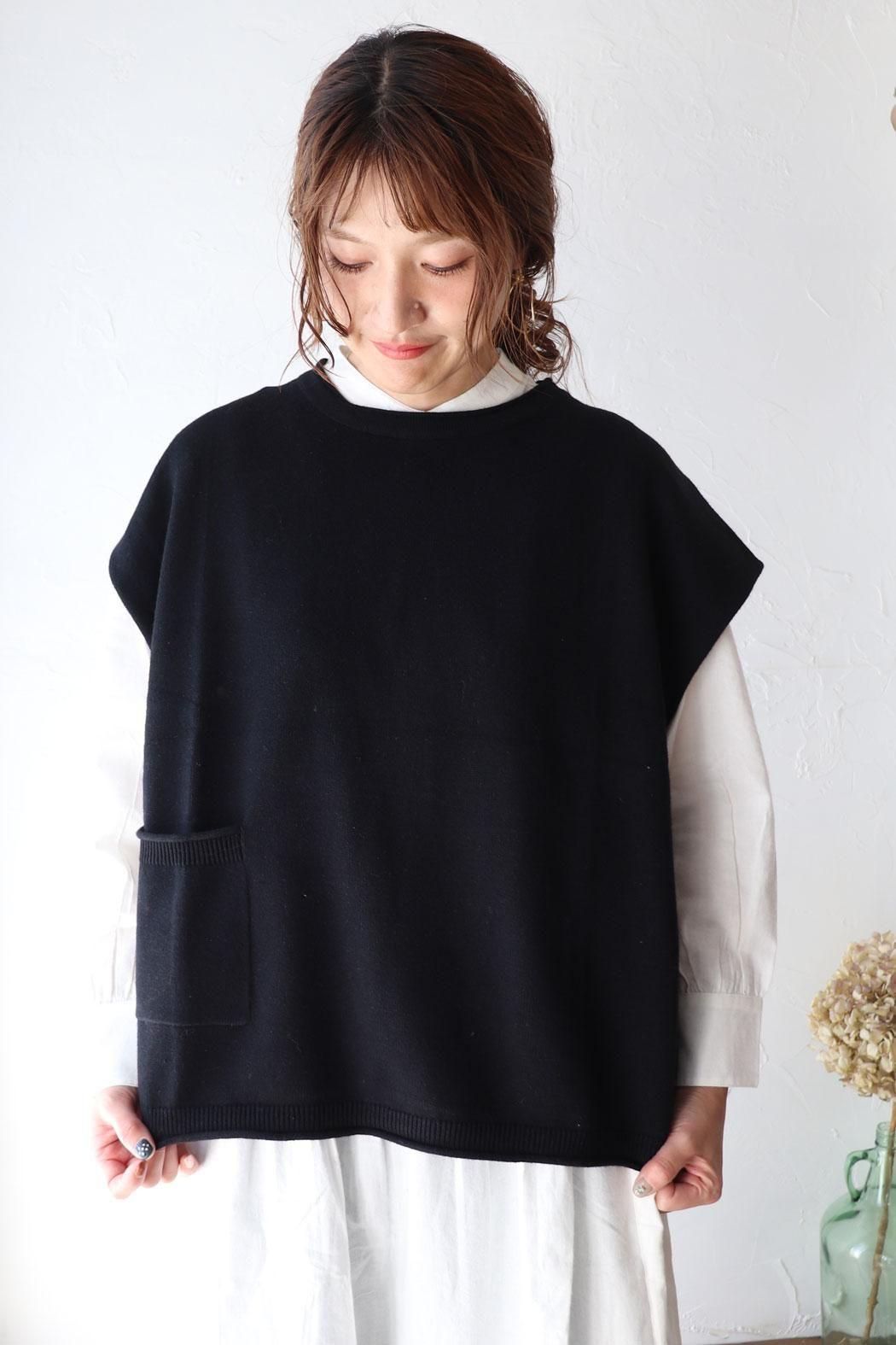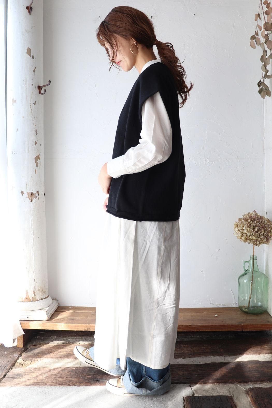 着心地の良いコットン素材に温かみのあるウールを配合したニットベスト。