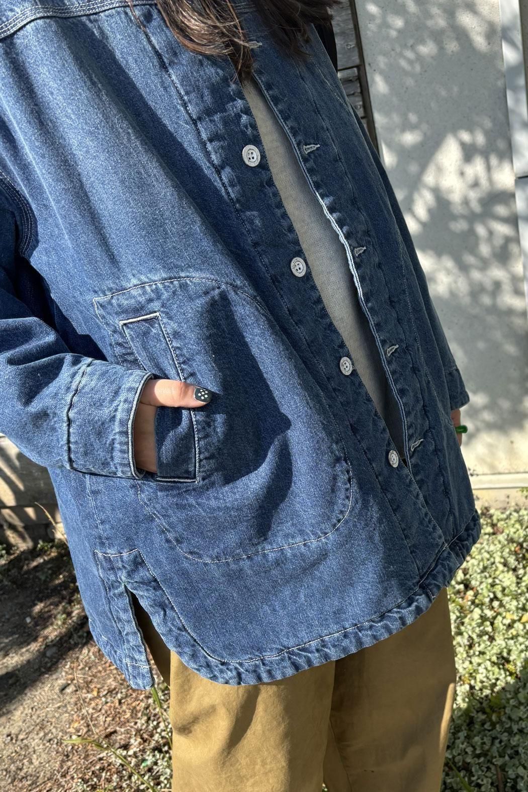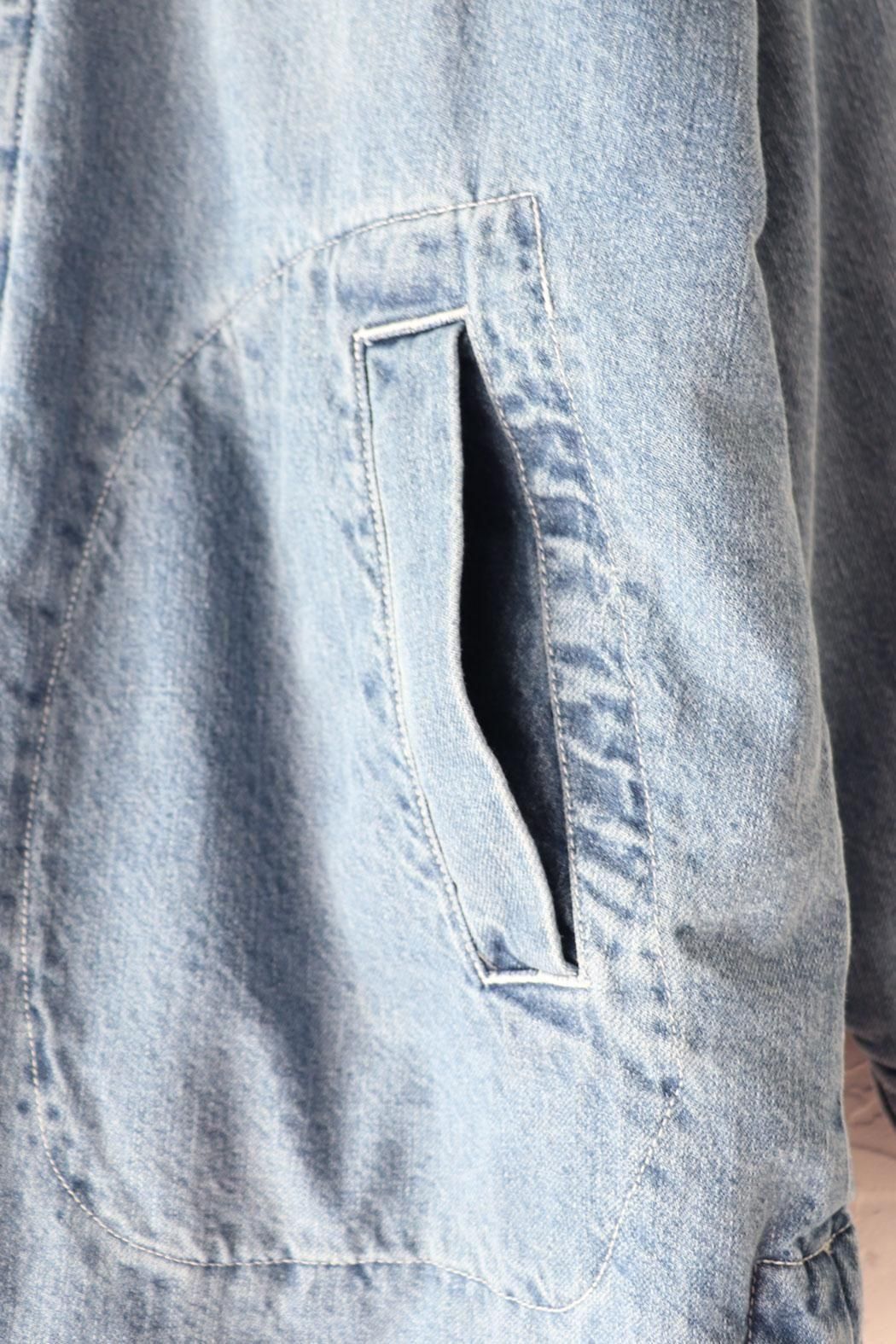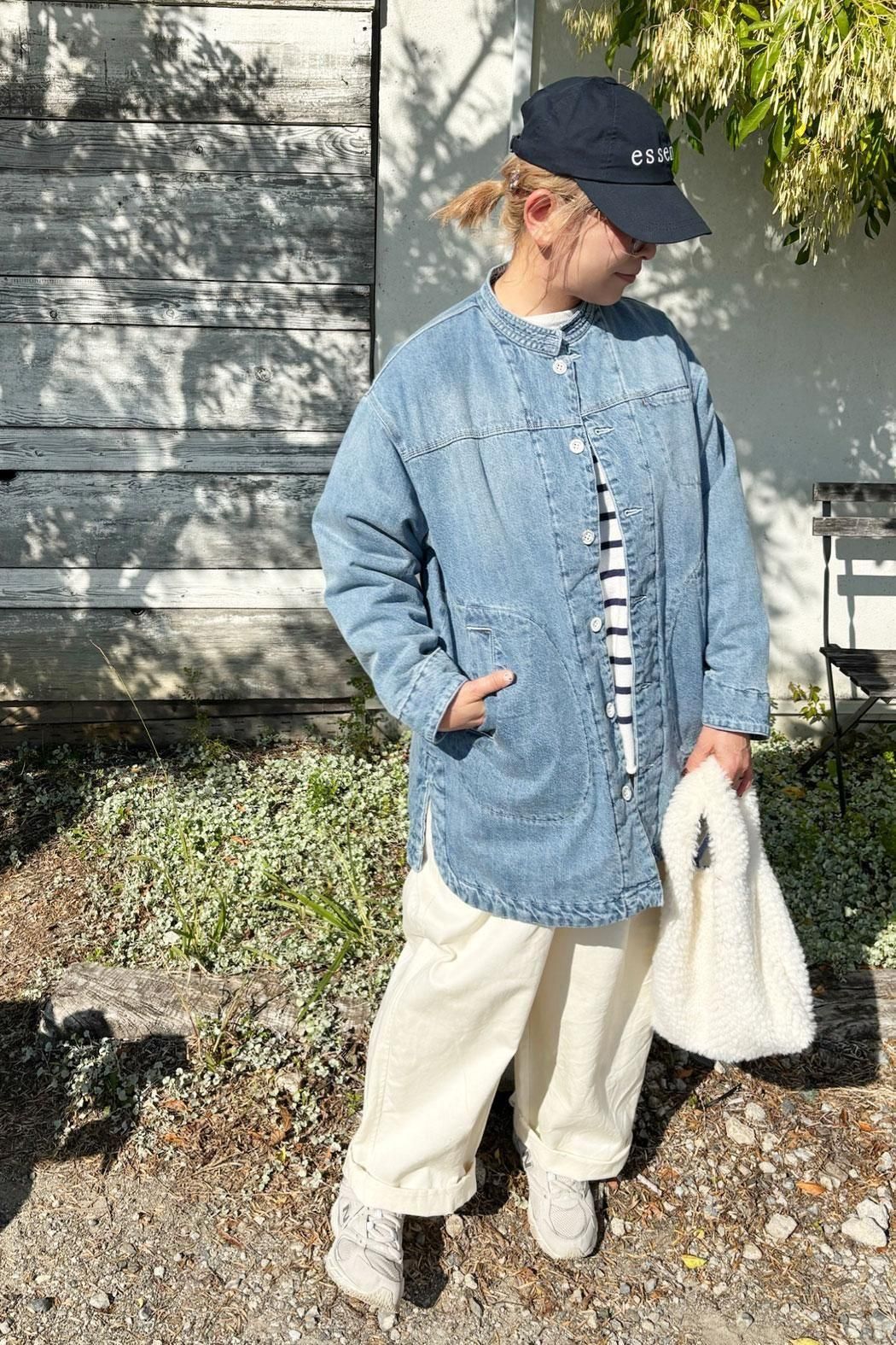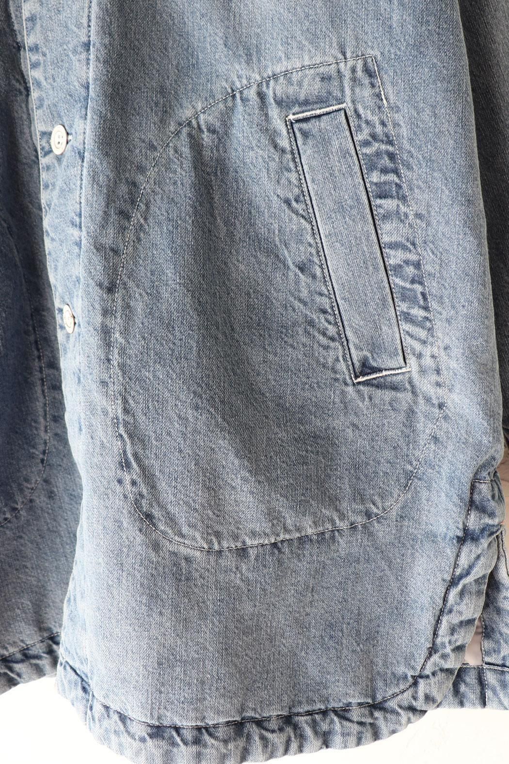 しっかりと厚みのあるデニム素材で仕立てた中綿コート。