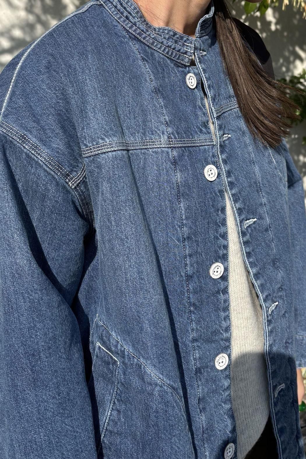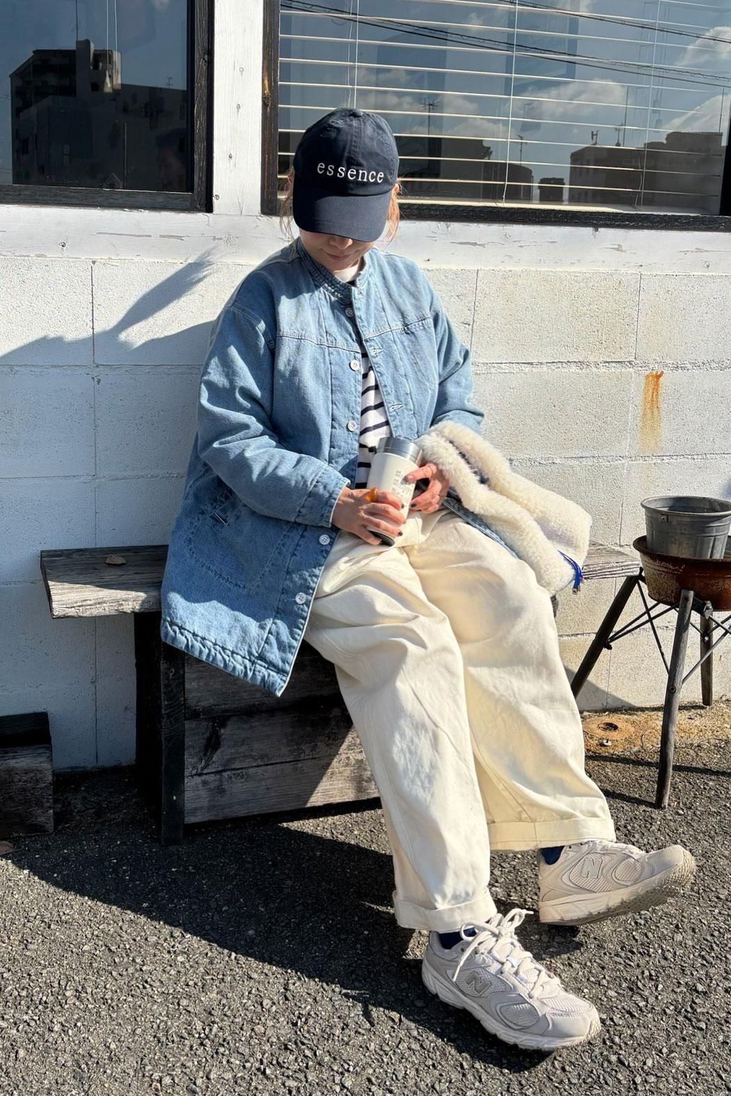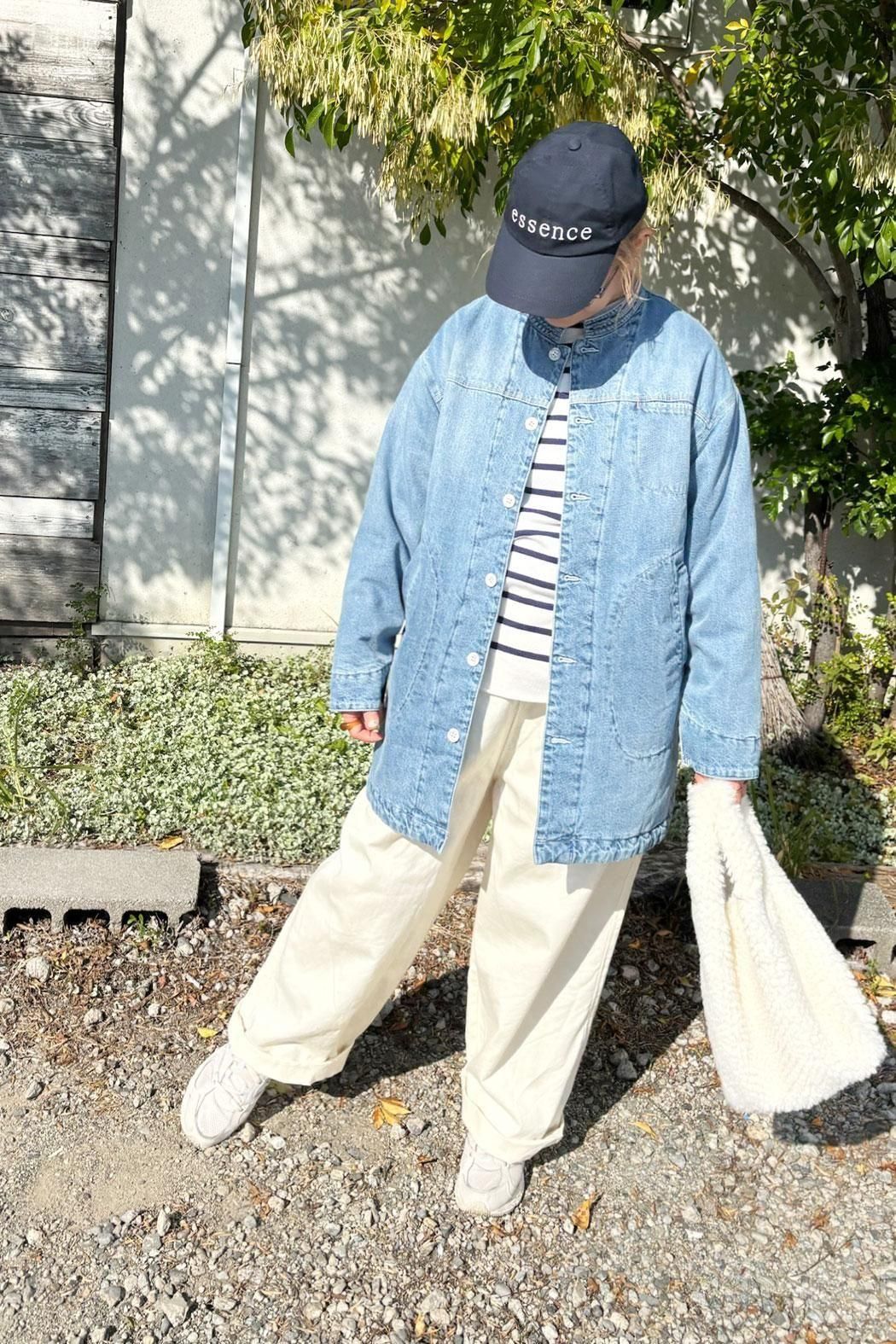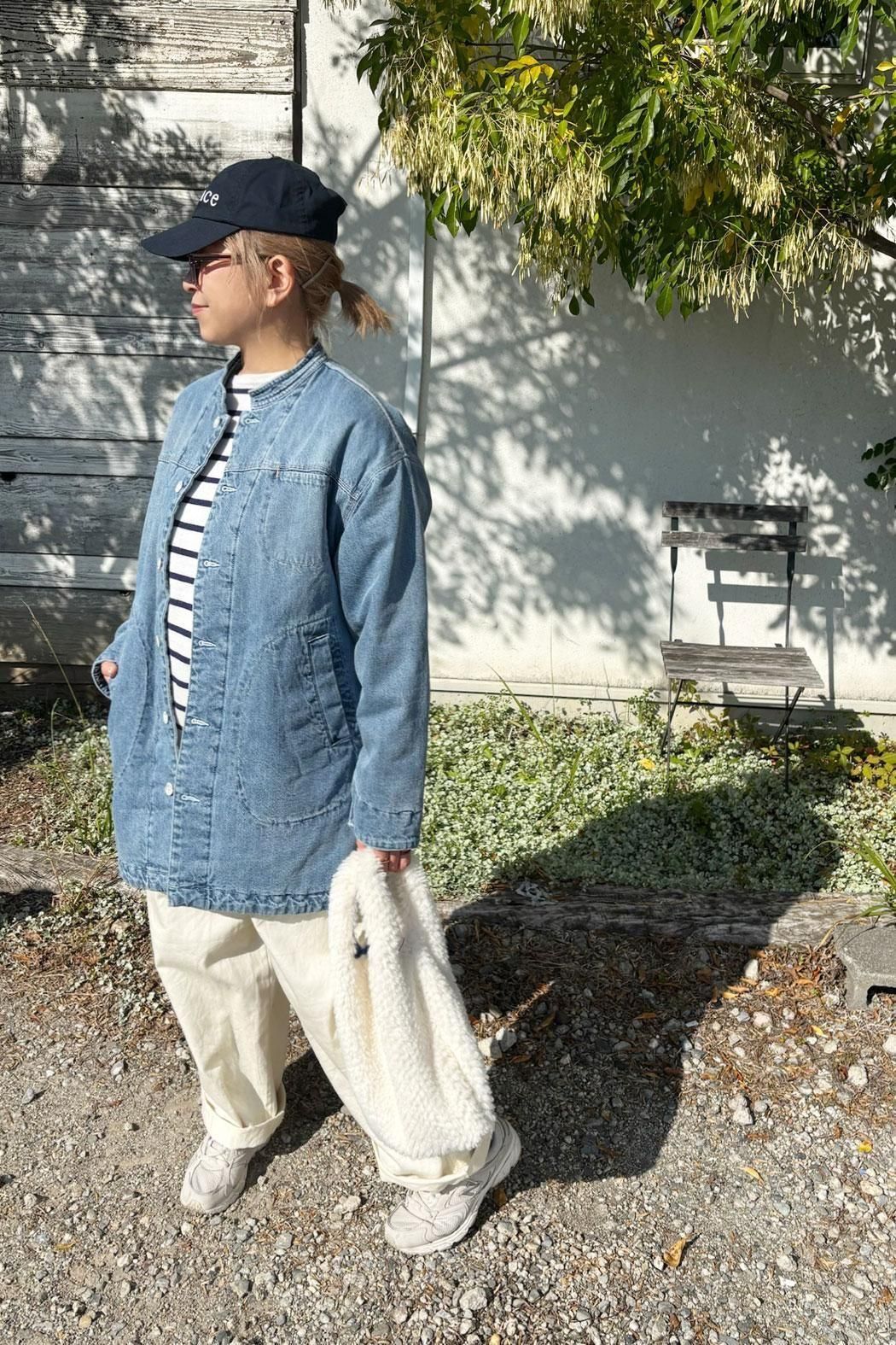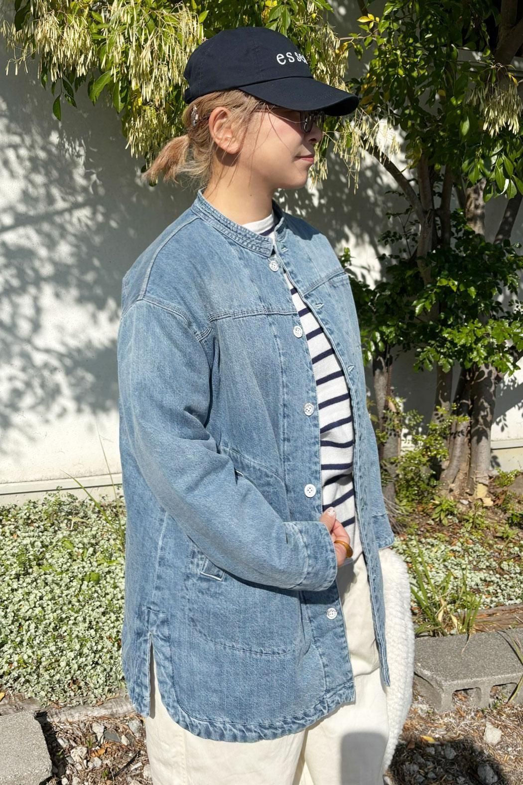 しっかりと厚みのあるデニム素材で仕立てた中綿コート。