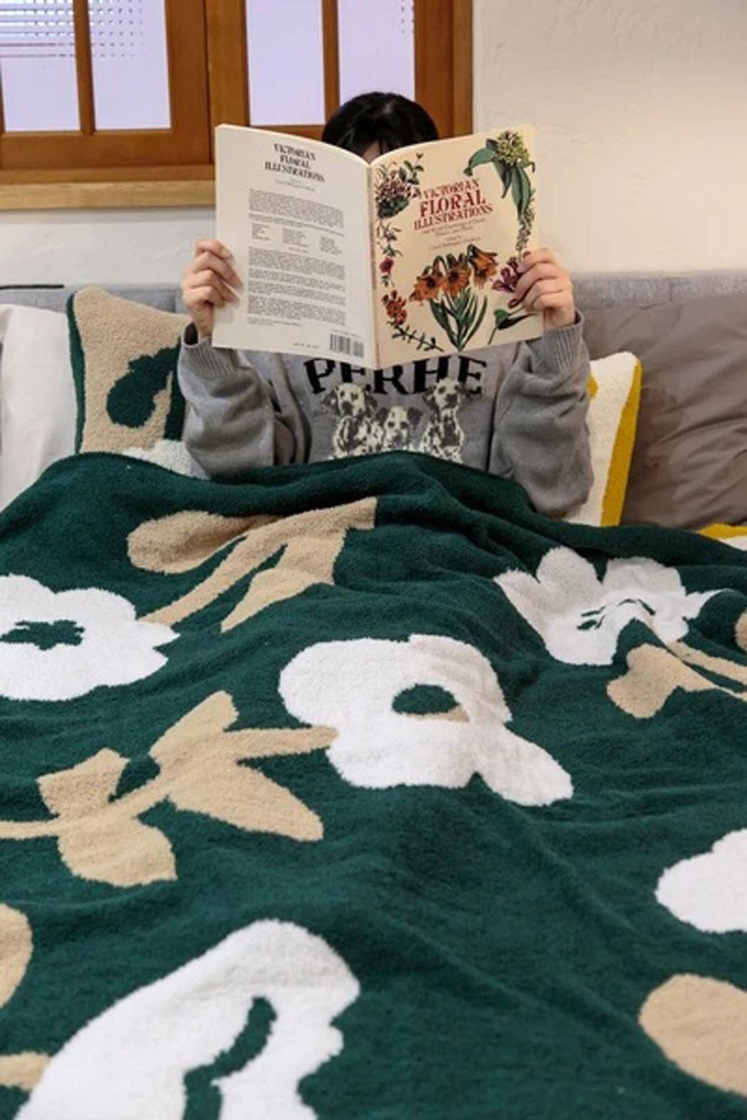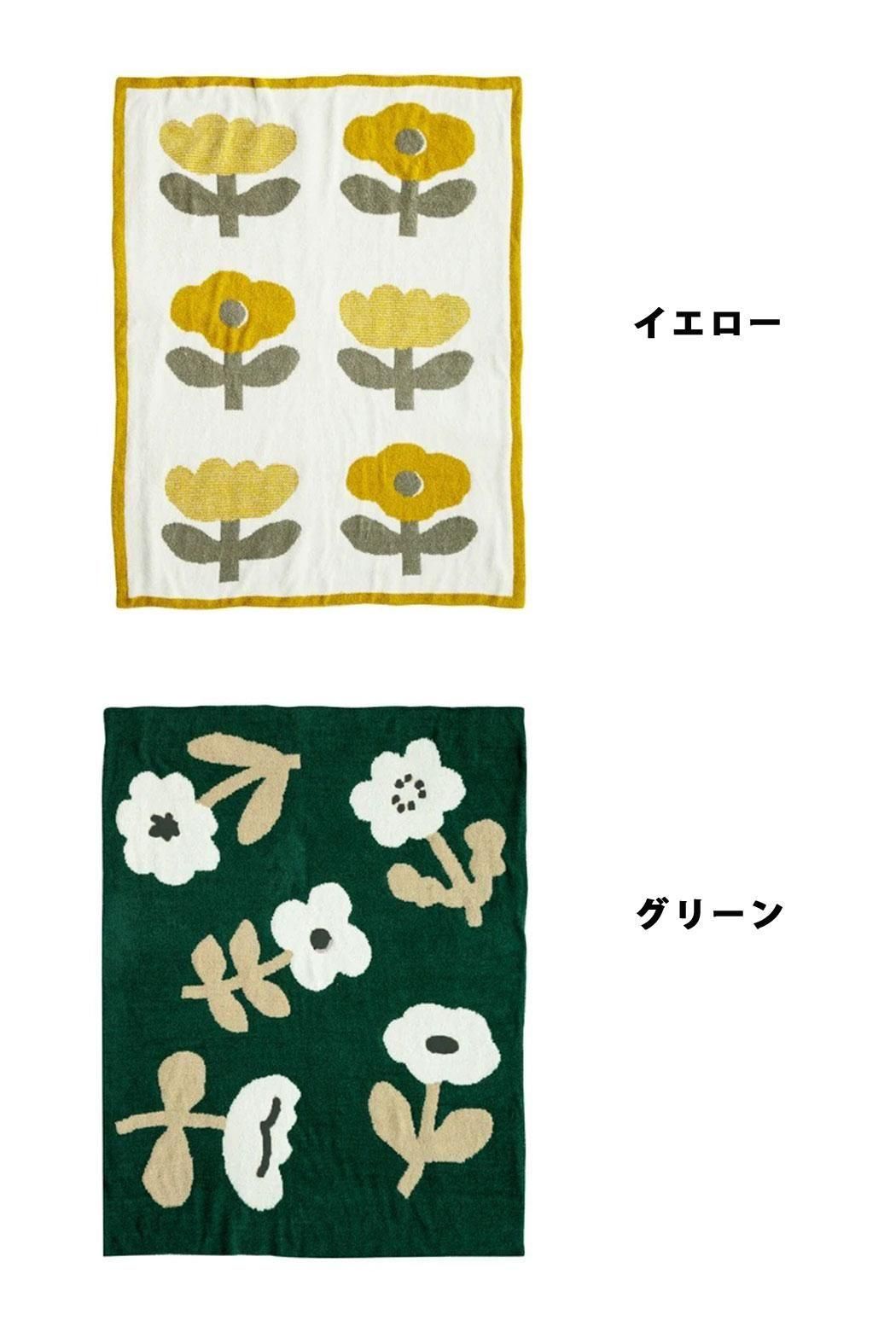 北欧テイストのフラワーモチーフのニットブランケット。