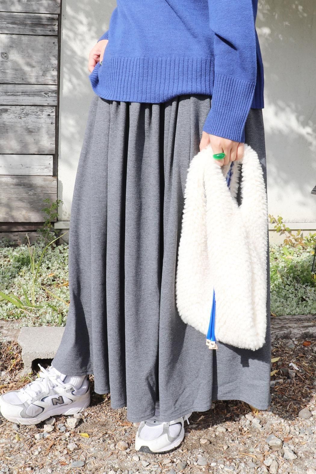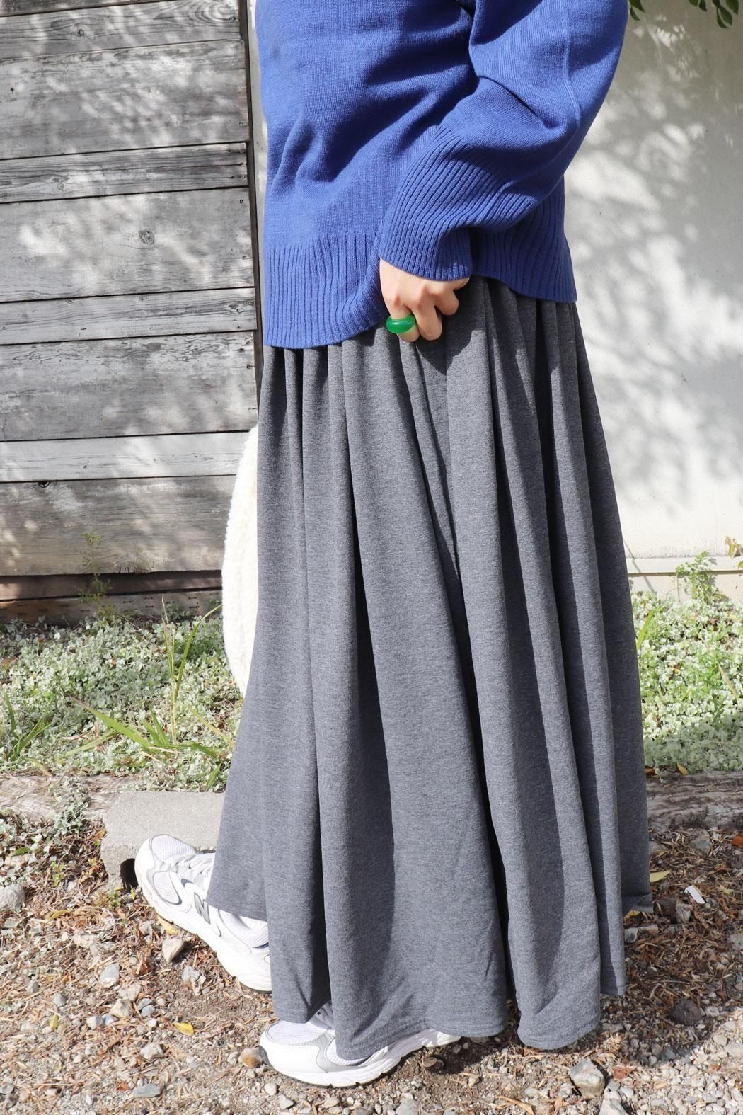 落ち感が綺麗なシルエットのギャザースカート。