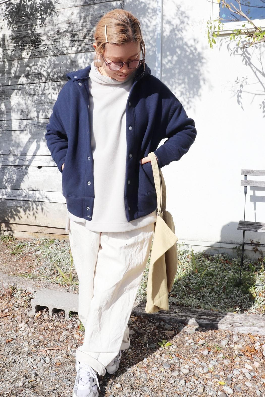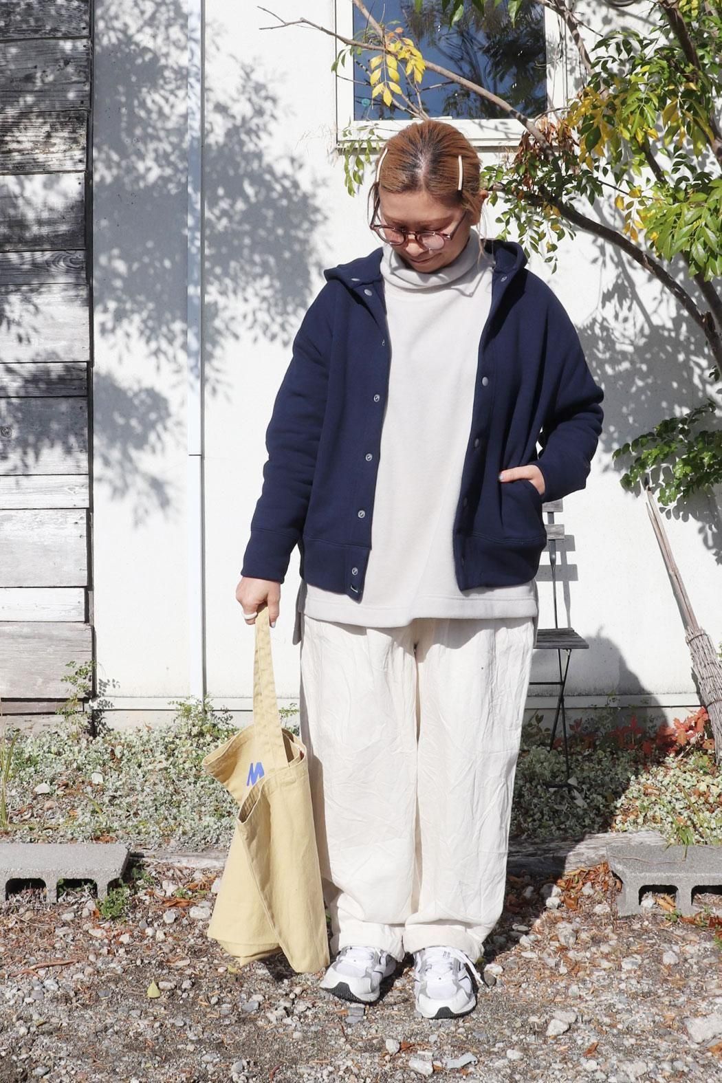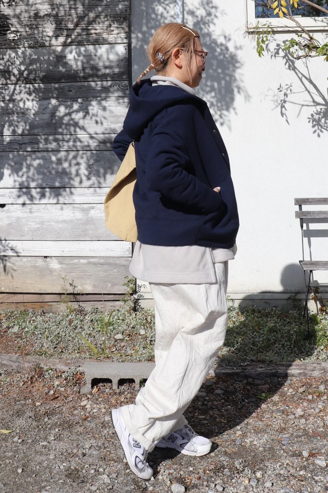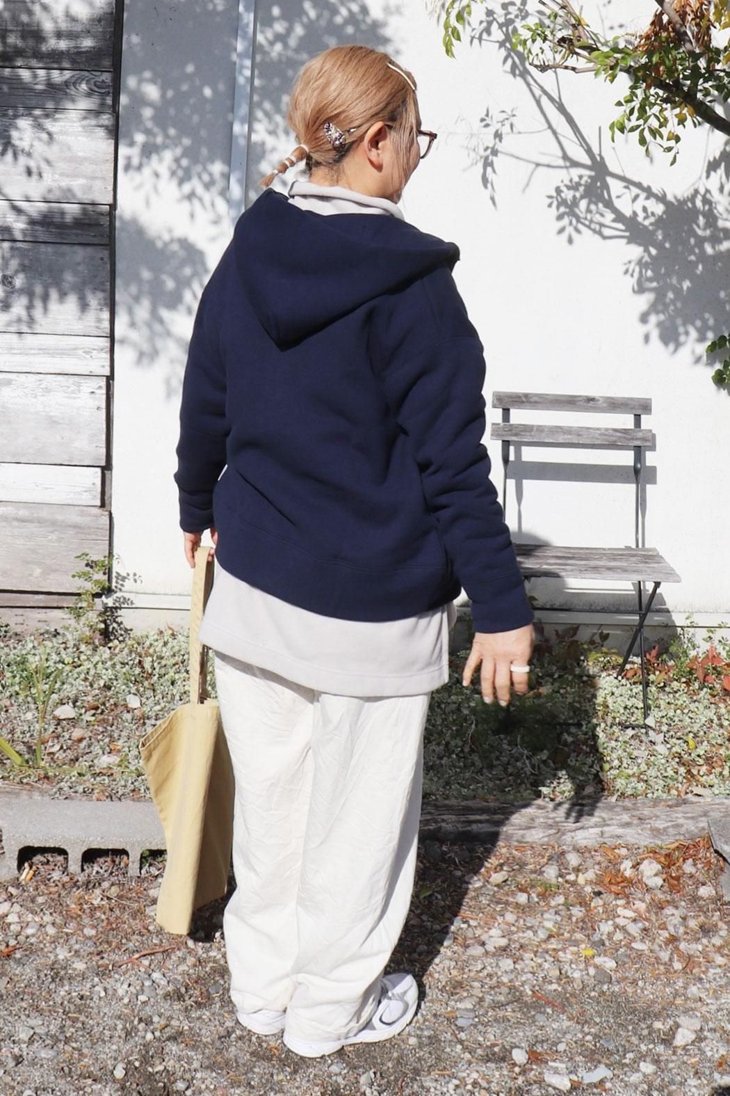 フードを付けることで、首回りもしっかり温かく、レイヤードにもひと役*