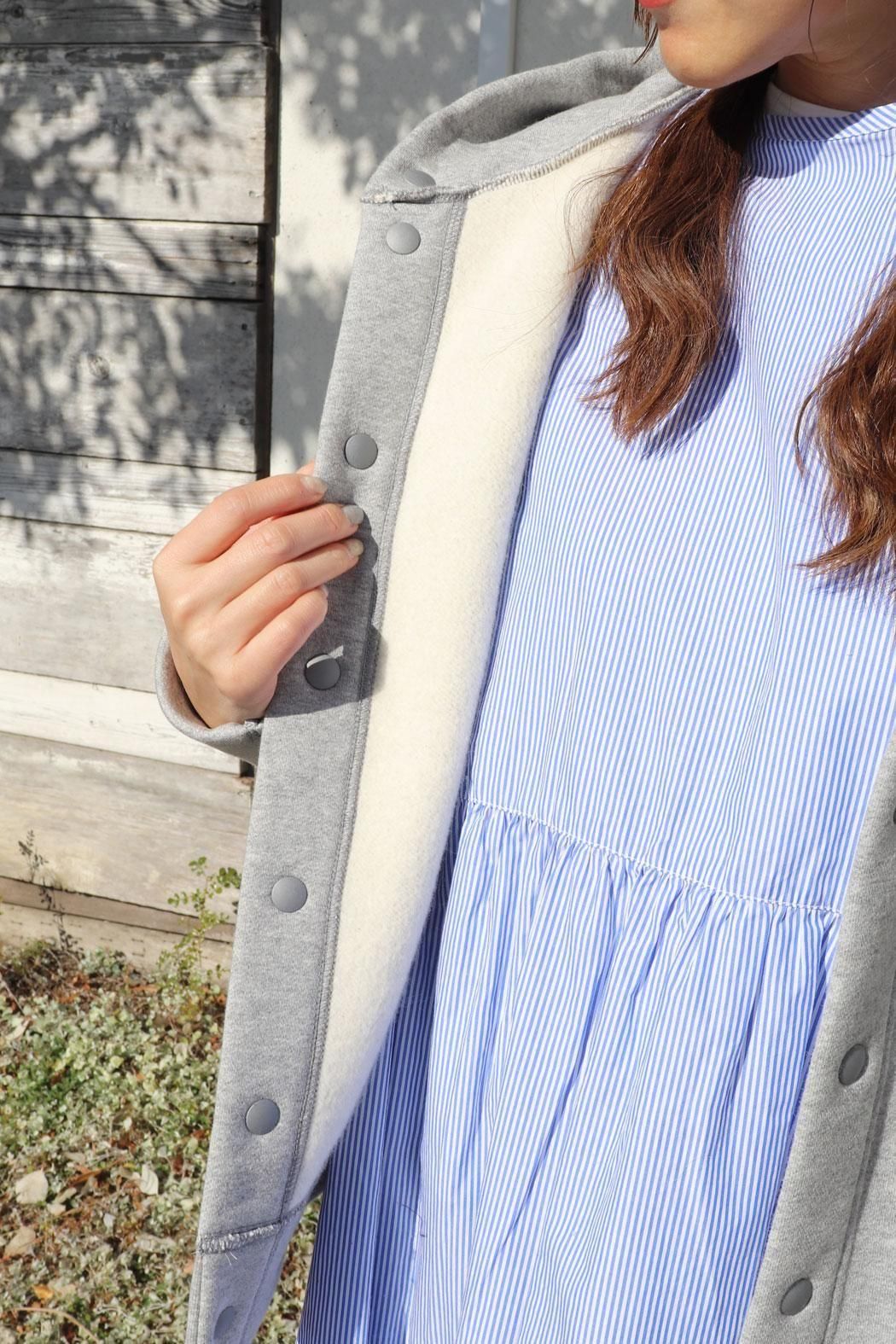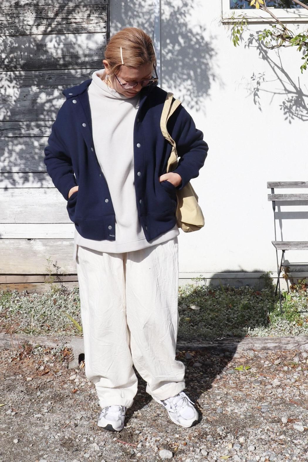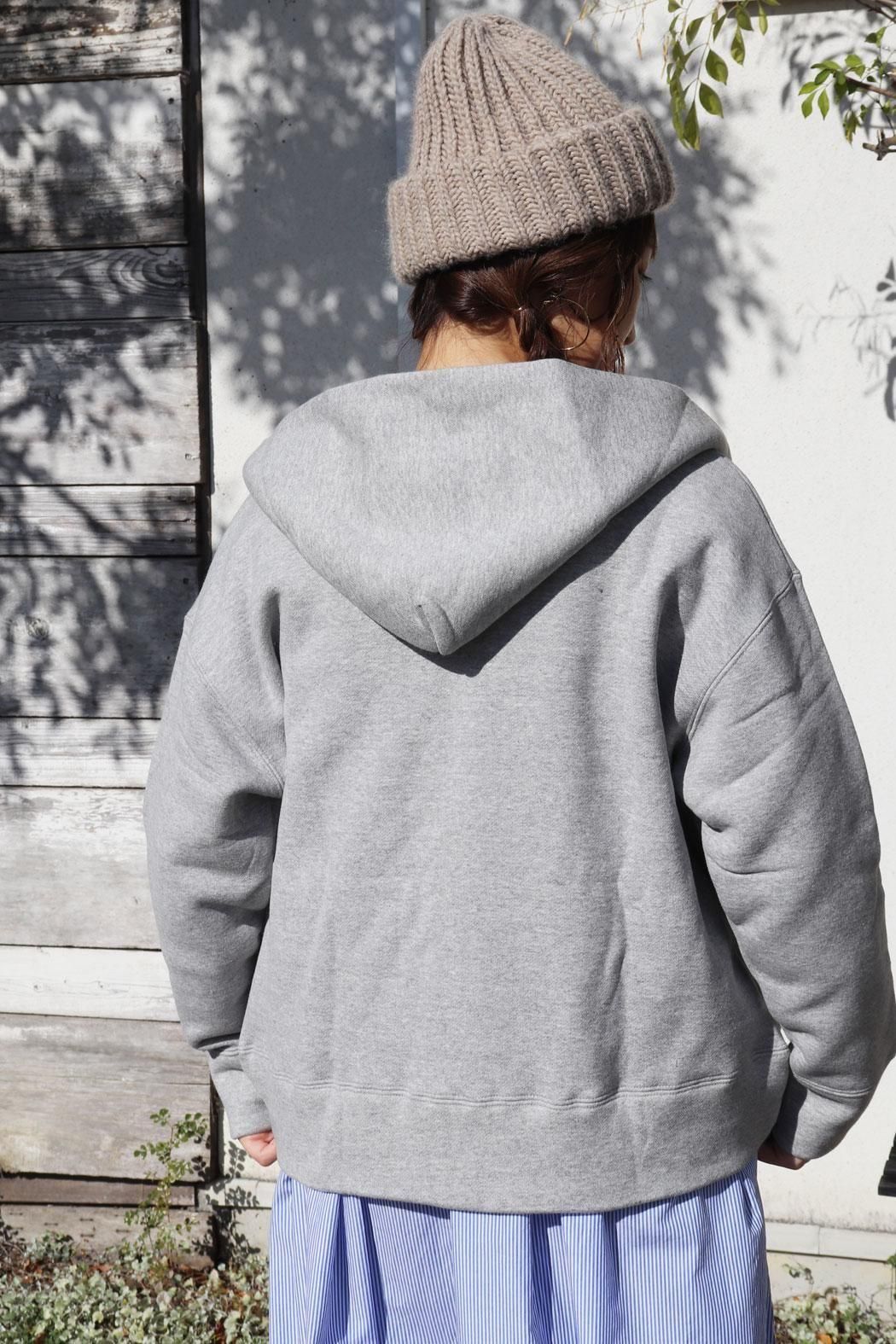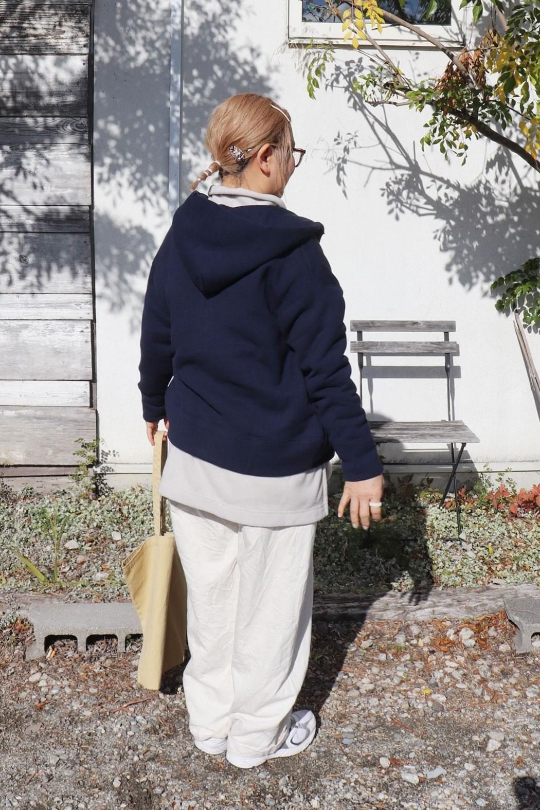 フードを付けることで、首回りもしっかり温かく、レイヤードにもひと役*