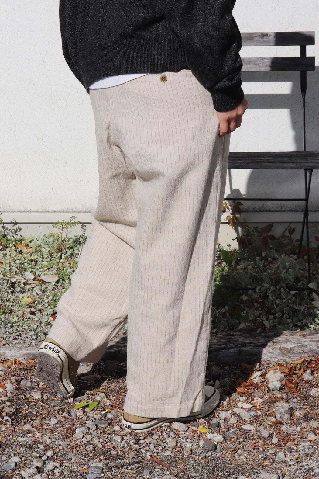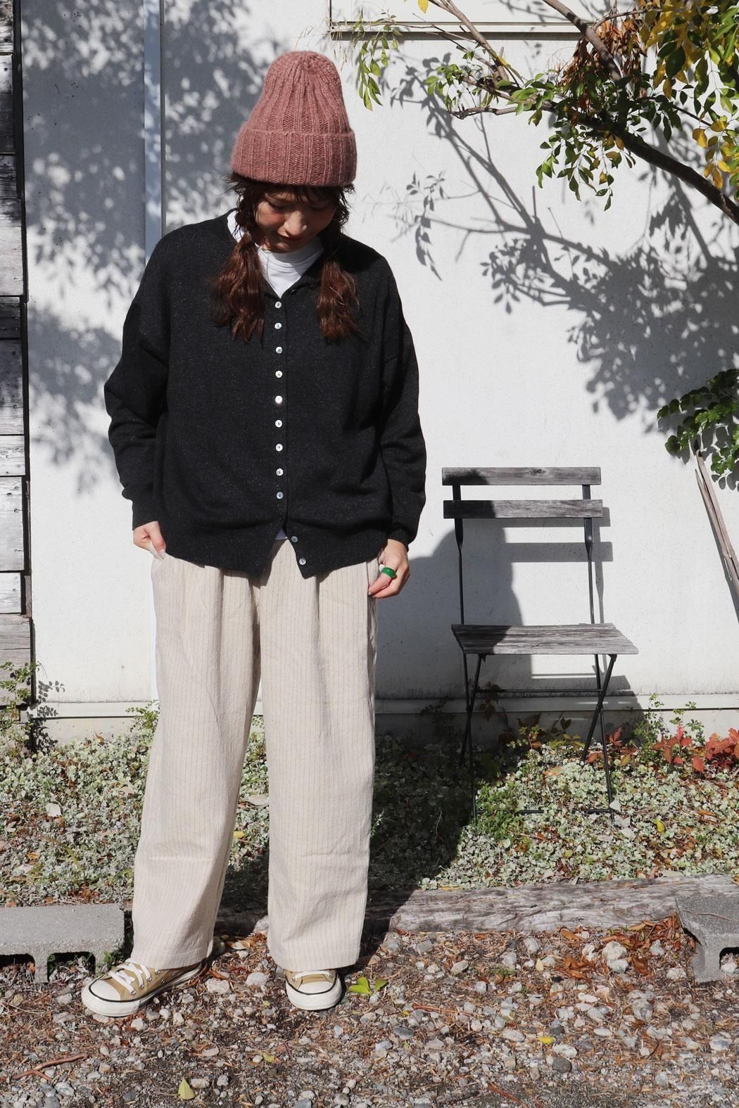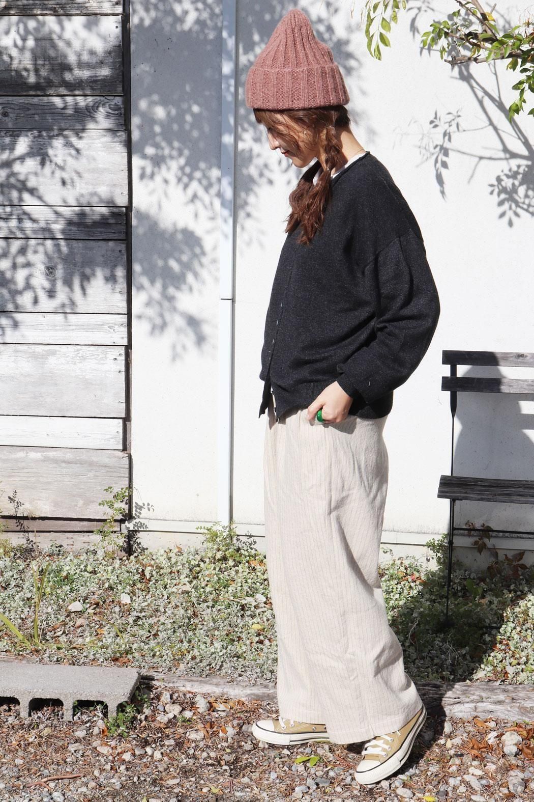 ウールの起毛感が秋冬コーデに映えるパンツ。