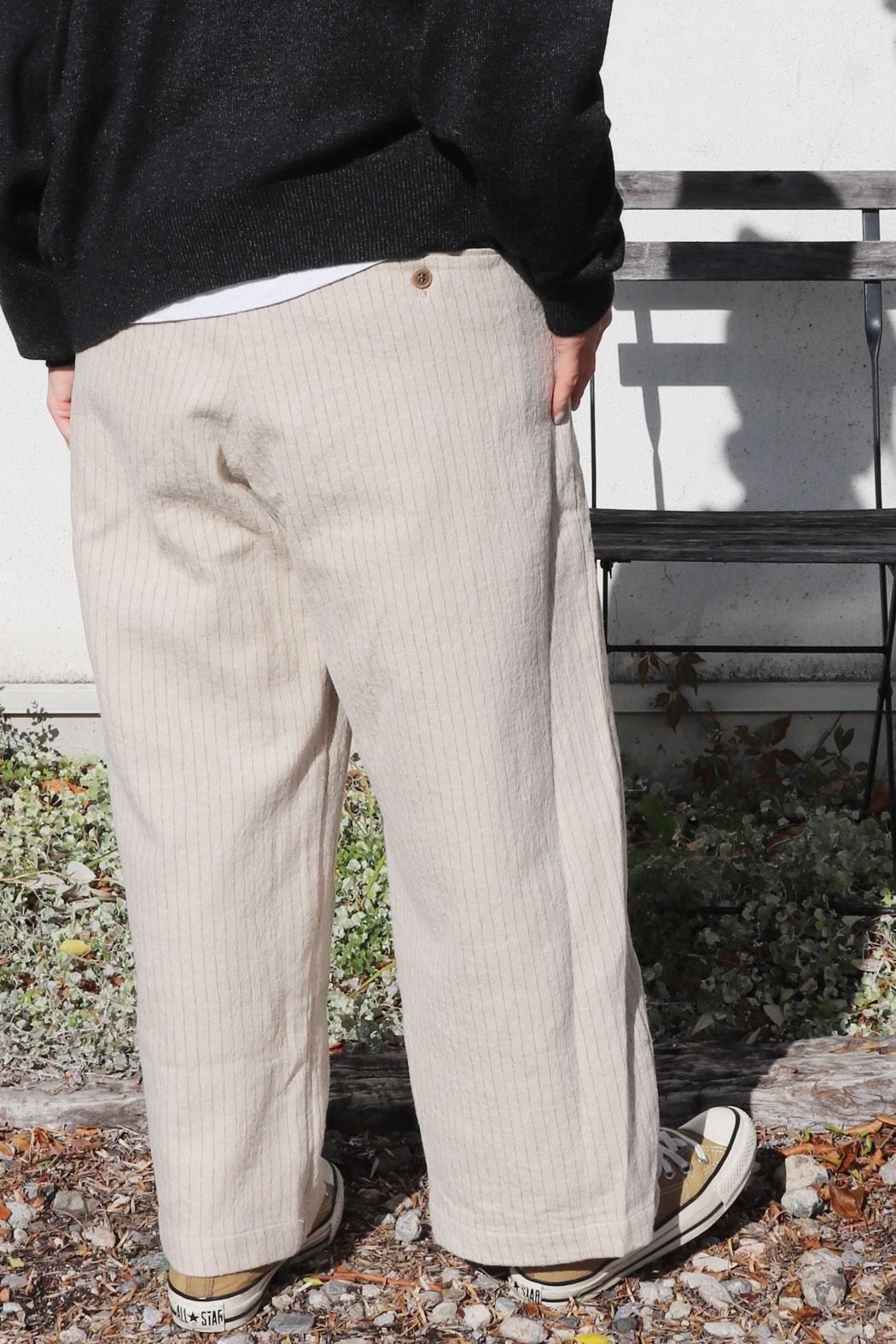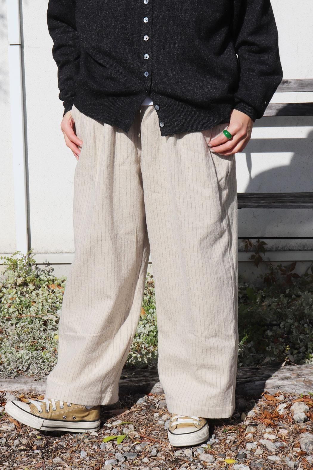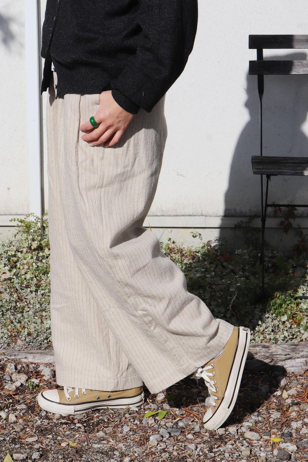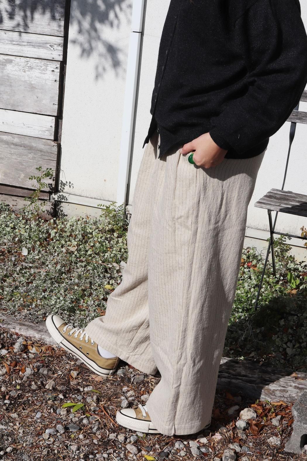 ウールの起毛感が秋冬コーデに映えるパンツ。