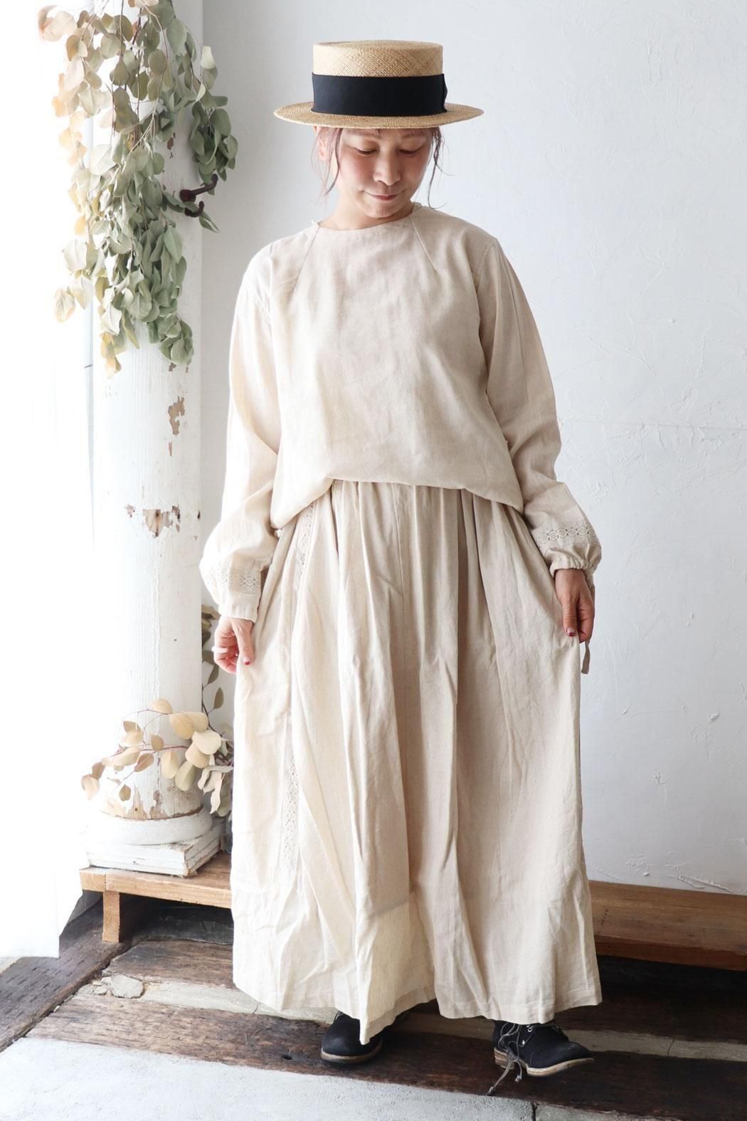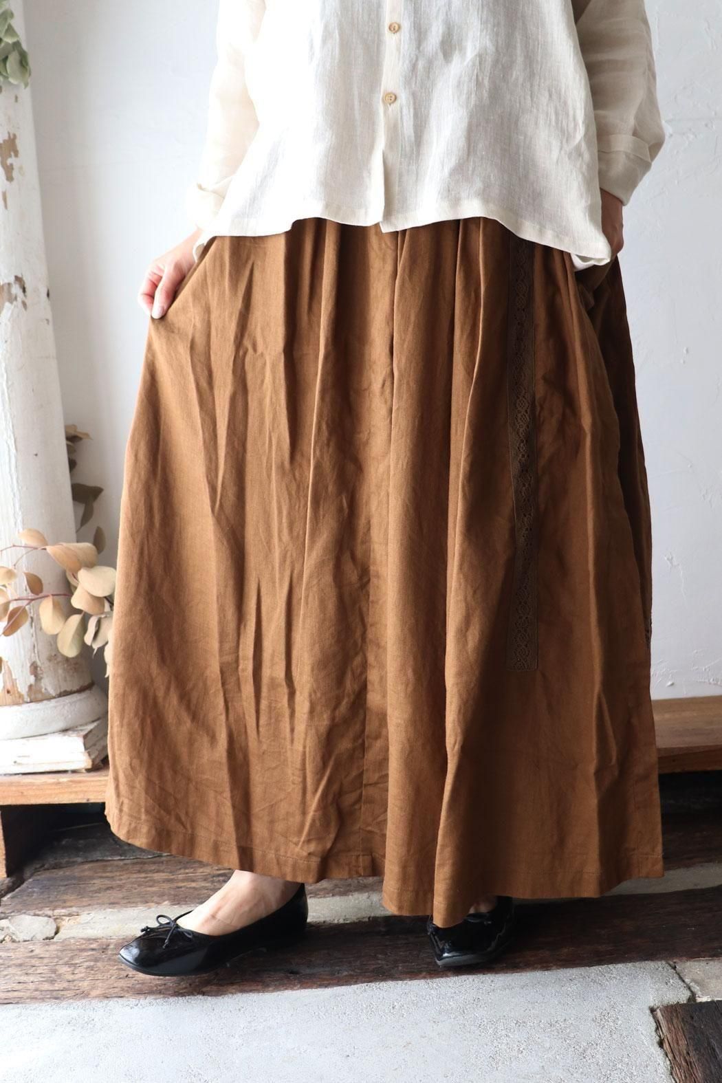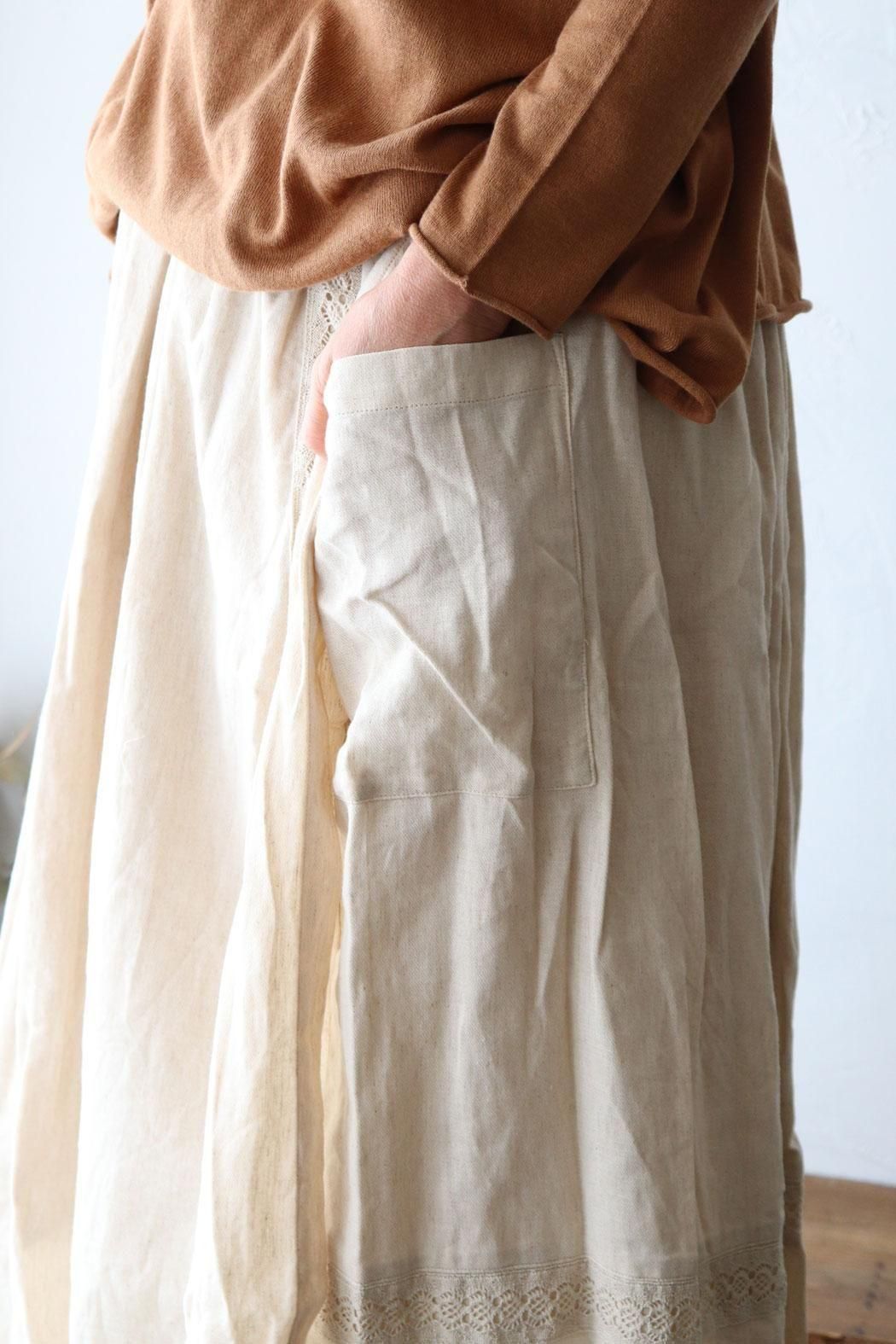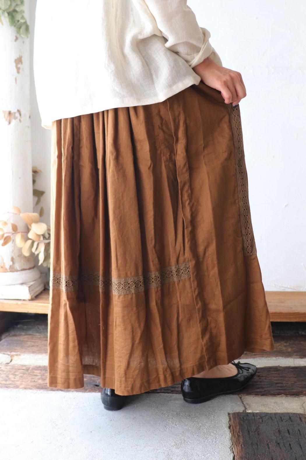 コットンリネンの薄手ビエラ生地を使用したレース付スカート。