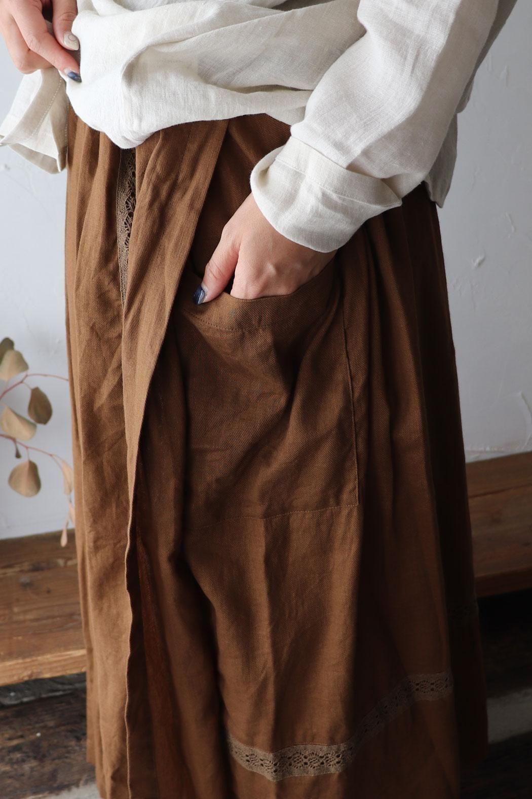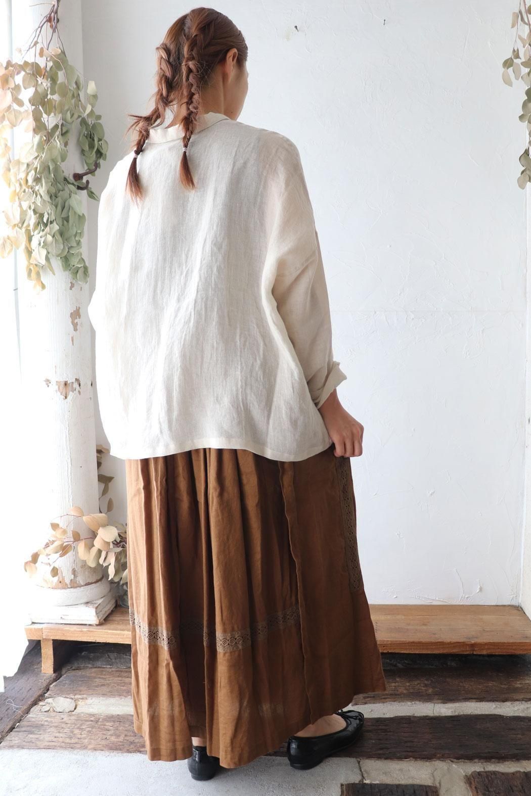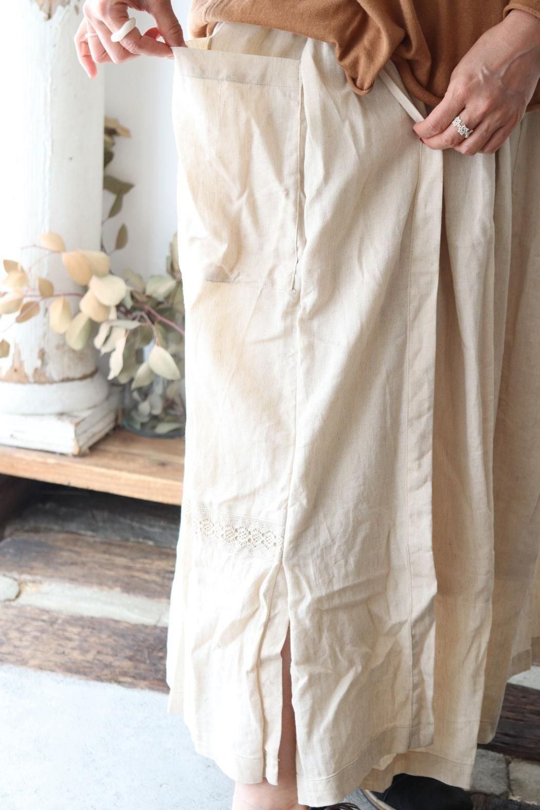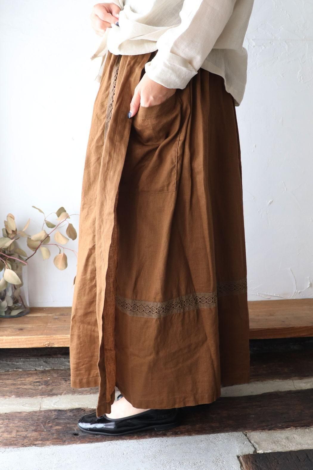 コットンリネンの薄手ビエラ生地を使用したレース付スカート。