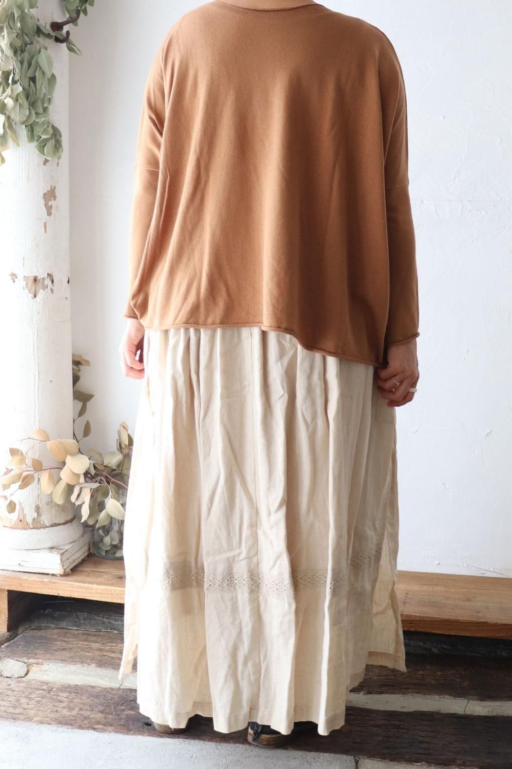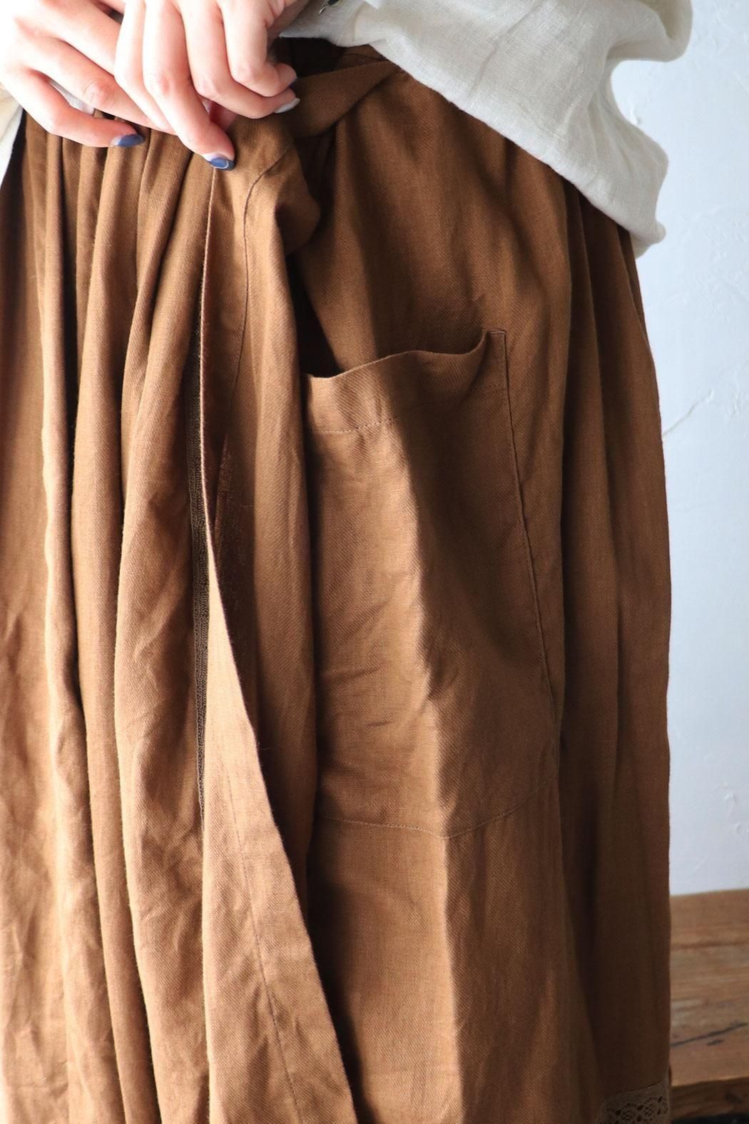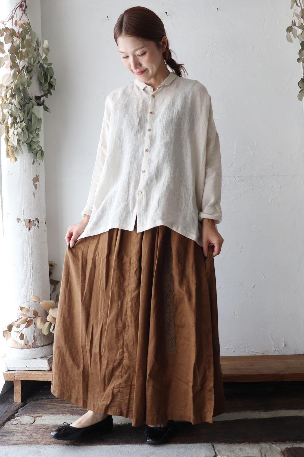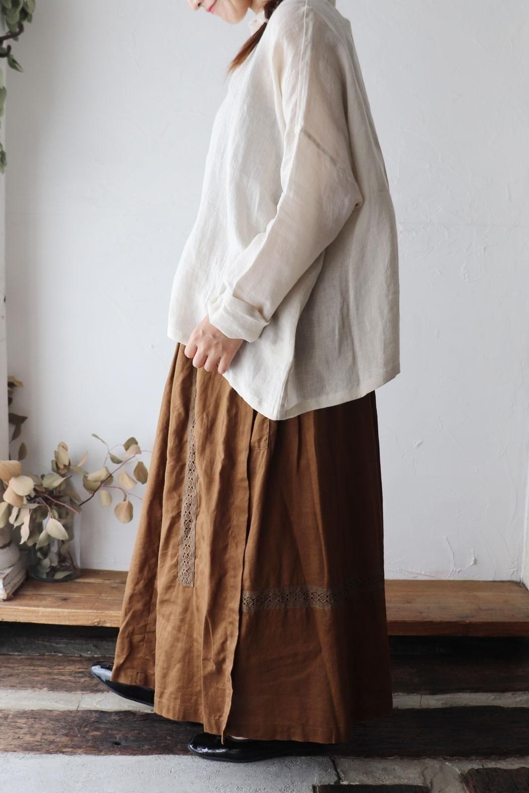 コットンリネンの薄手ビエラ生地を使用したレース付スカート。