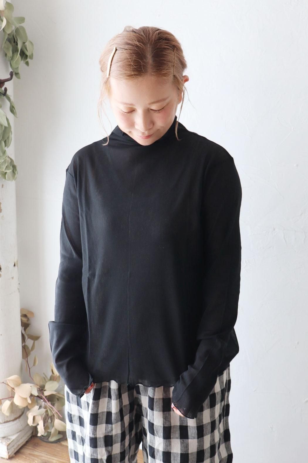 tumugu:(ツムグ)コットンチュール ハイネックロングTシャツ