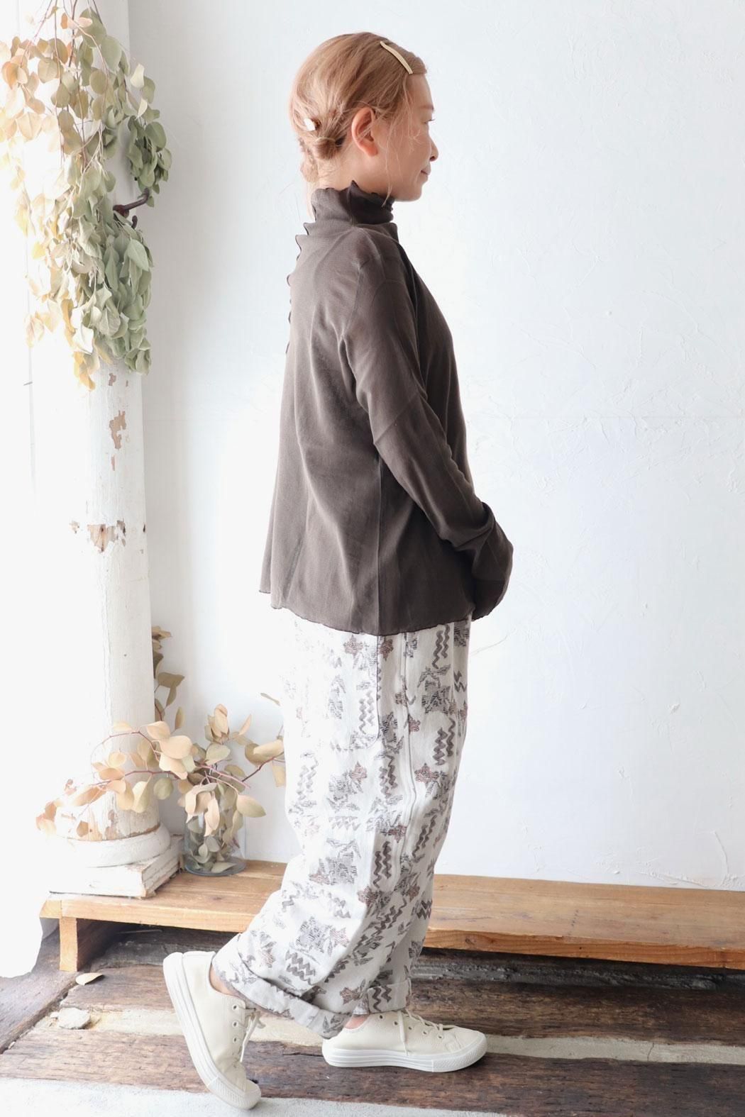 さりげないフリルと、裾と袖口に施されたスリットが抜け感を生みます。