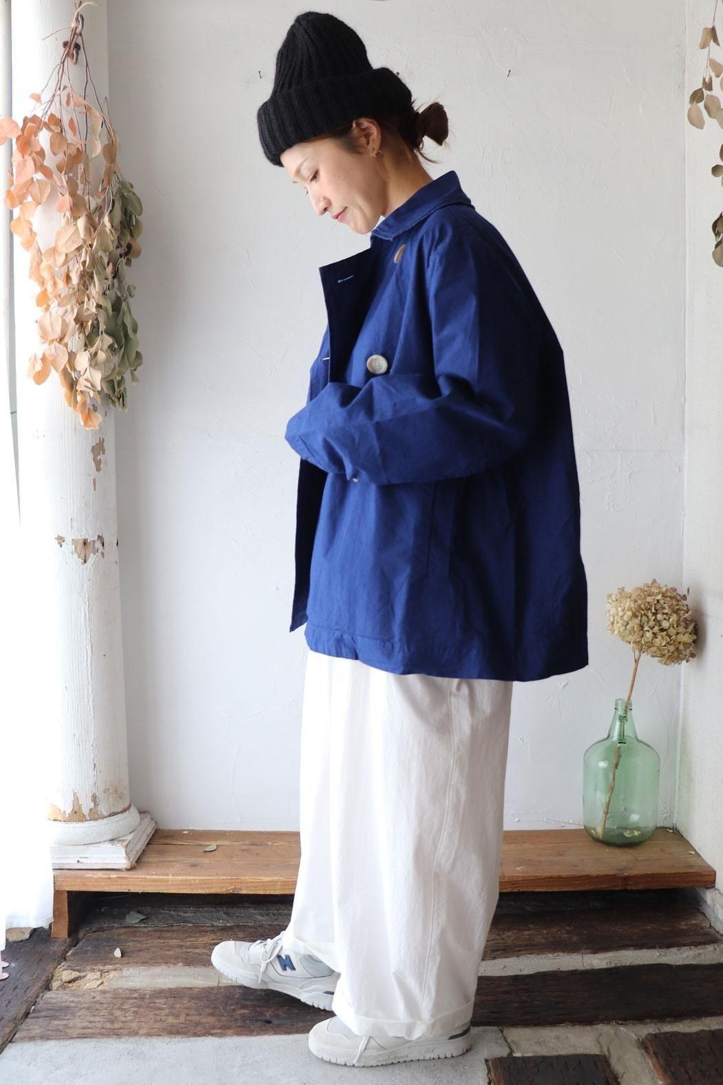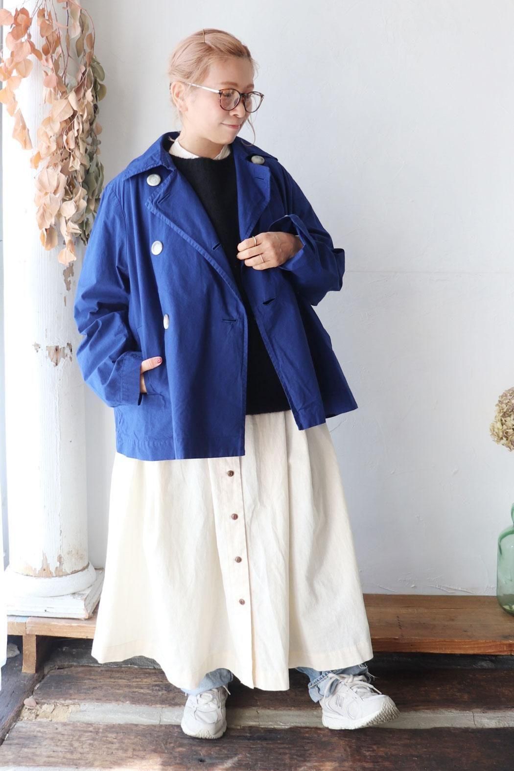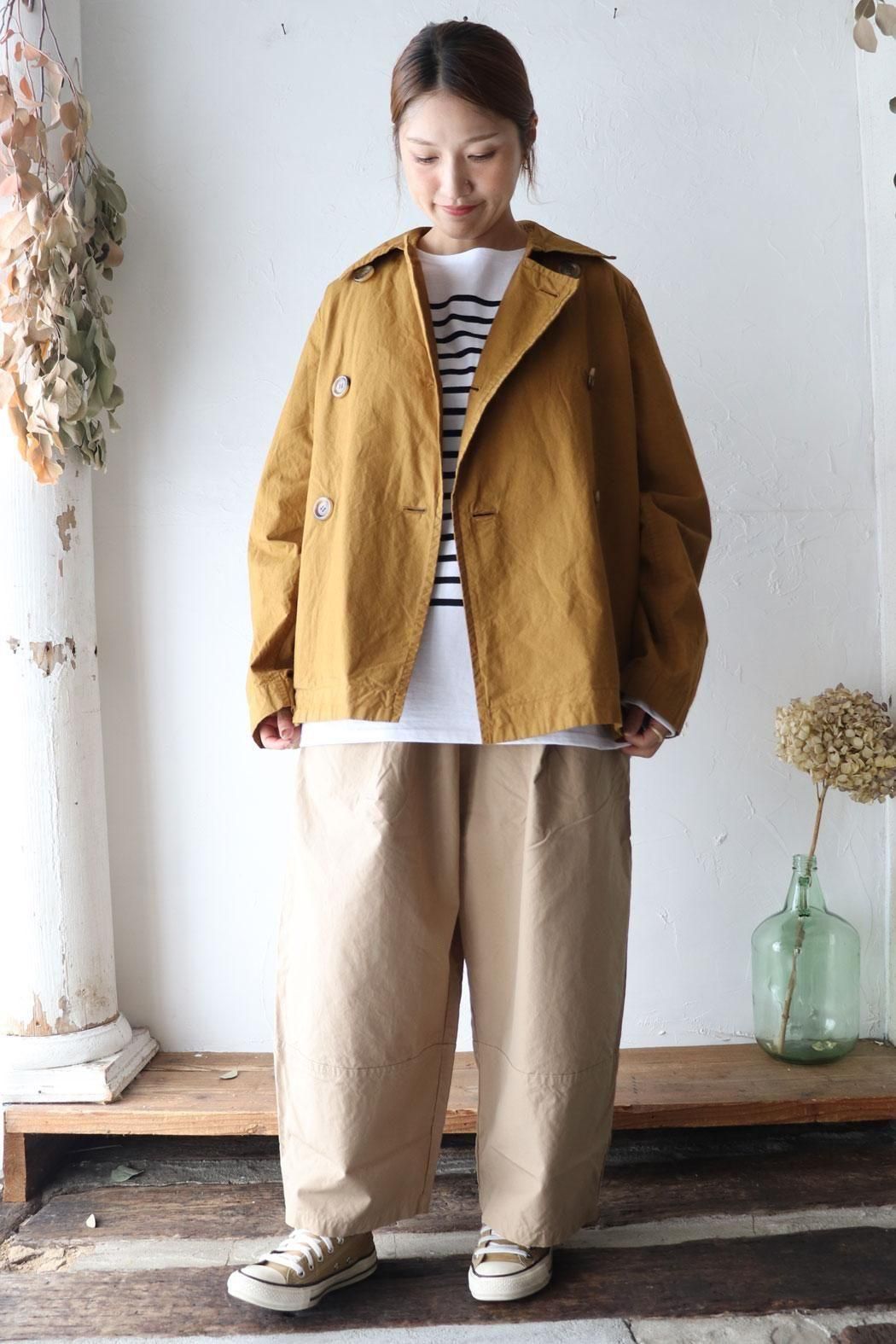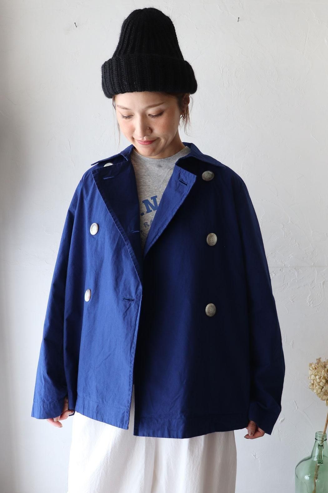 コットン100%の生地で仕立てた定番人気のダブルボタンのショートコート。