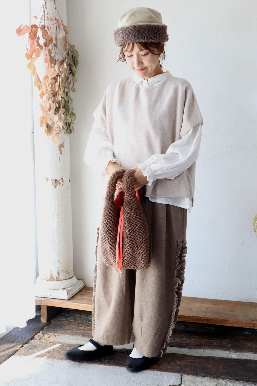 ふわふわのボアが秋冬コーデに映えるトートバッグ。