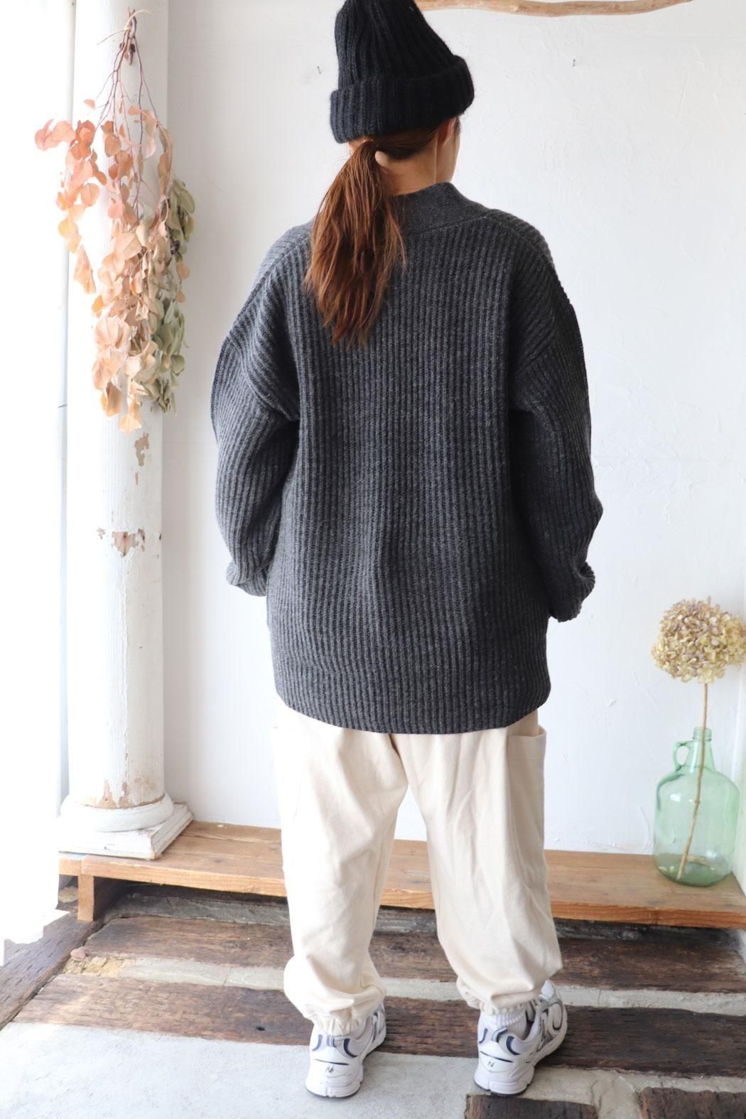 ヒップを覆う長めの丈と、立体感のあるリブ編みが秋冬コーデに映えます。