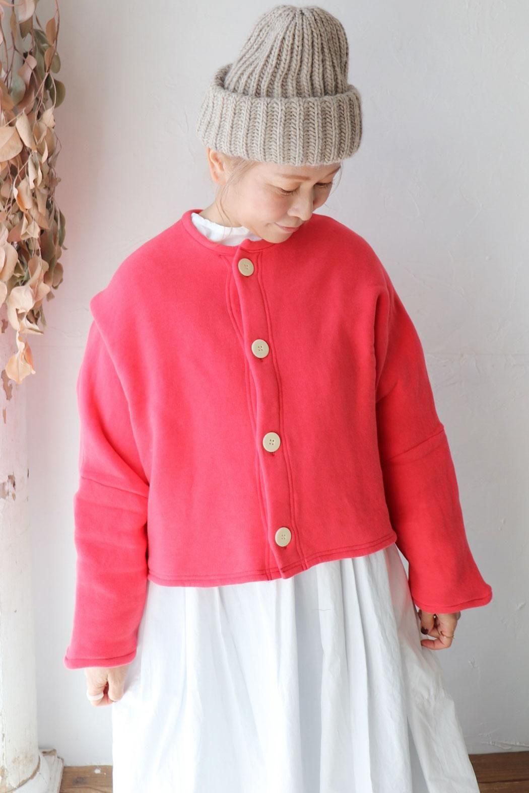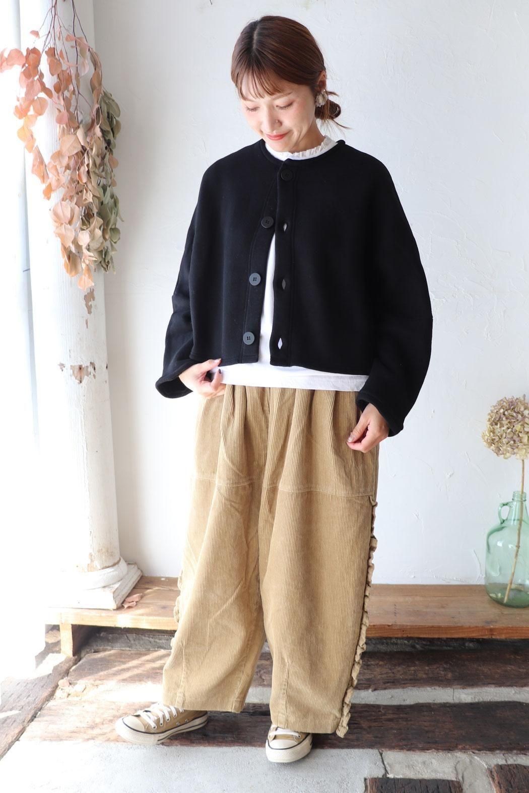 ふっくらと膨らみがあり、モチモチとした生地感が特徴のカーディガン。
