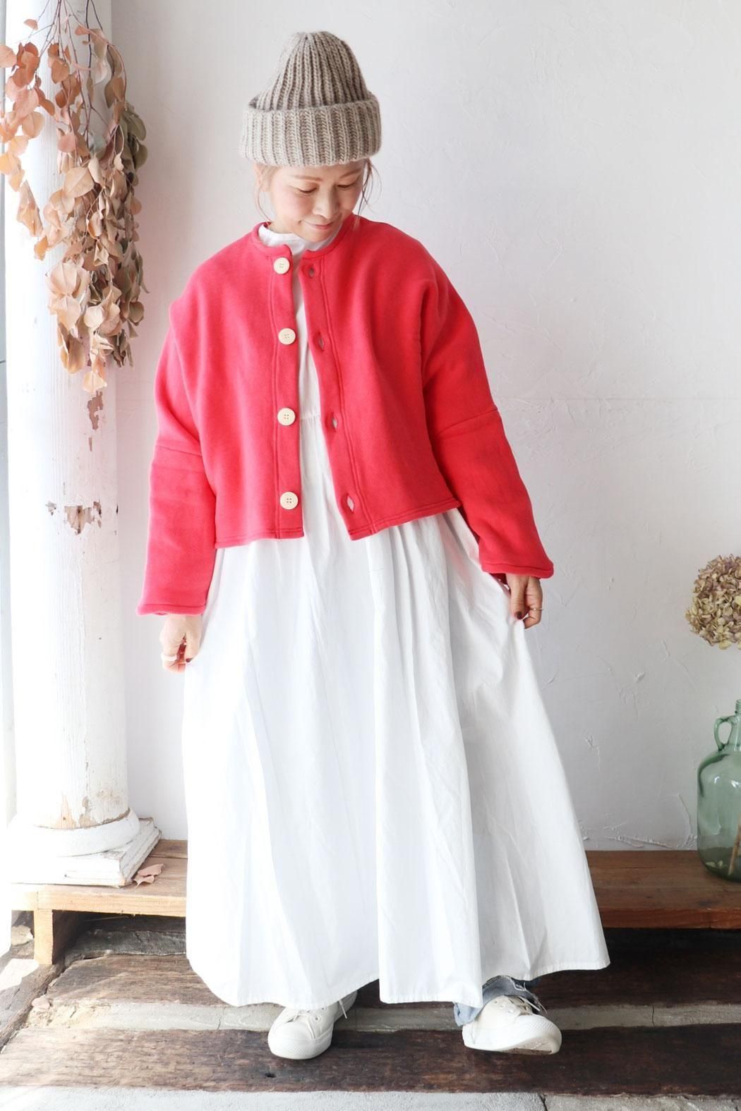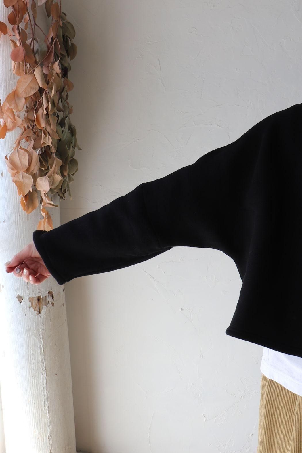 短め丈とドルマンスリーブが女性らしいシルエットを生み、どんなボトムスともバランスが取りやすく*
