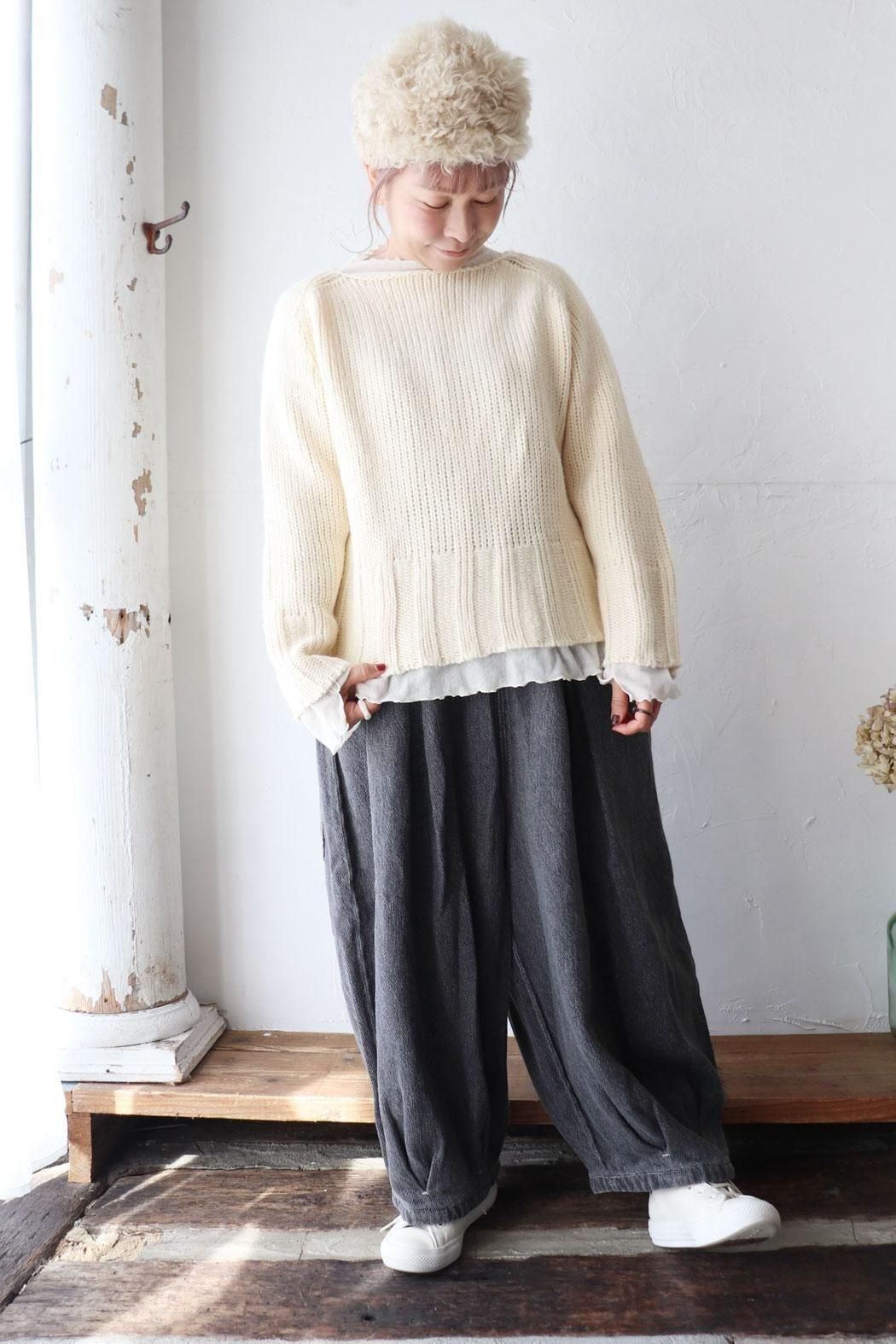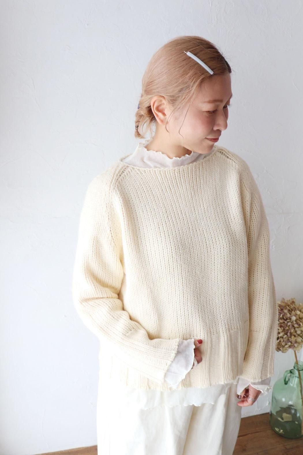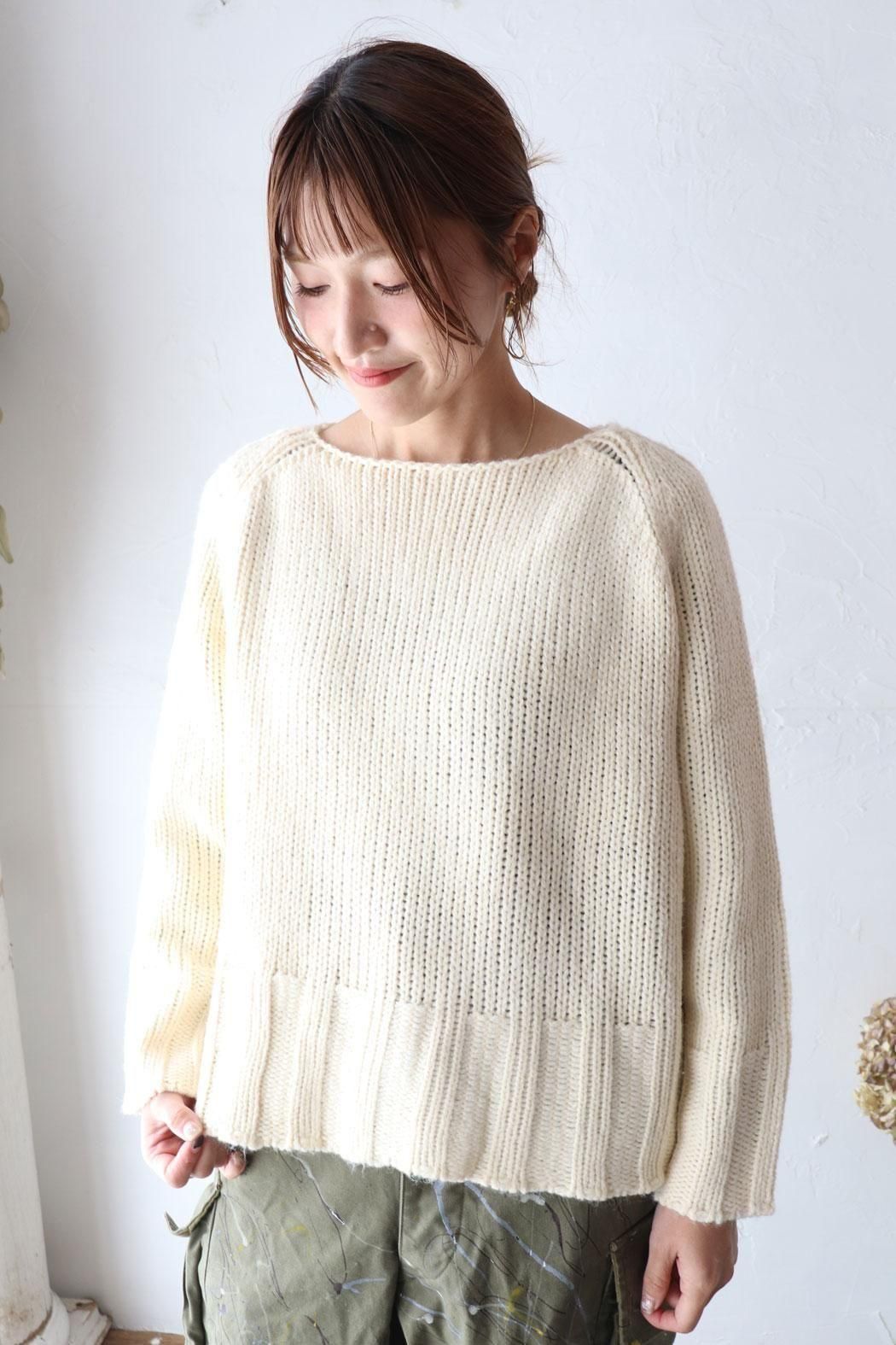 mao made(マオメイド) ざっくりローゲージ ボートネックプルオーバー